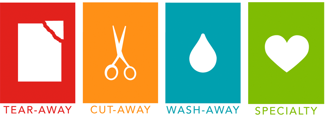 There are many types of stabilizer, including topping, Tear-Away, Cut-Away, Wash-Away, and Specialty Stabilizers, all available in a variety of weights. Let’s take a closer look at the most frequently used stabilizers: