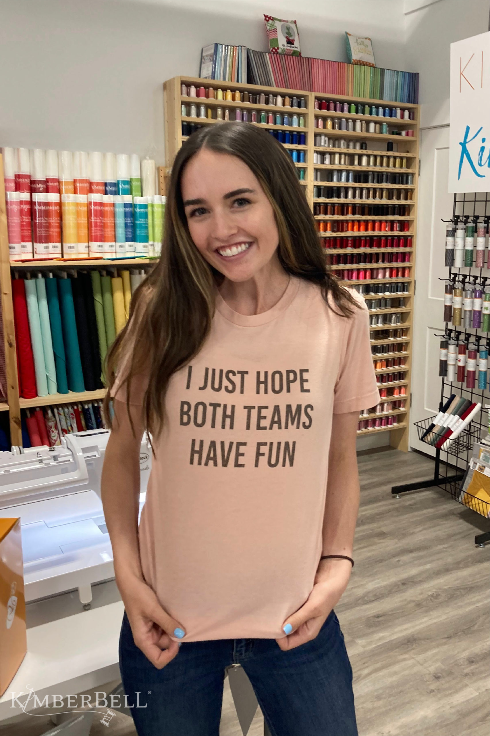 But alas, no fist fights ensued, which further proves that Kimberbell employees are nice to the core and probably not good candidates for other reality TV shows like Survivor. (Now, that's an intriguing idea. A Kimberbell Survivor. Hmmmm.)