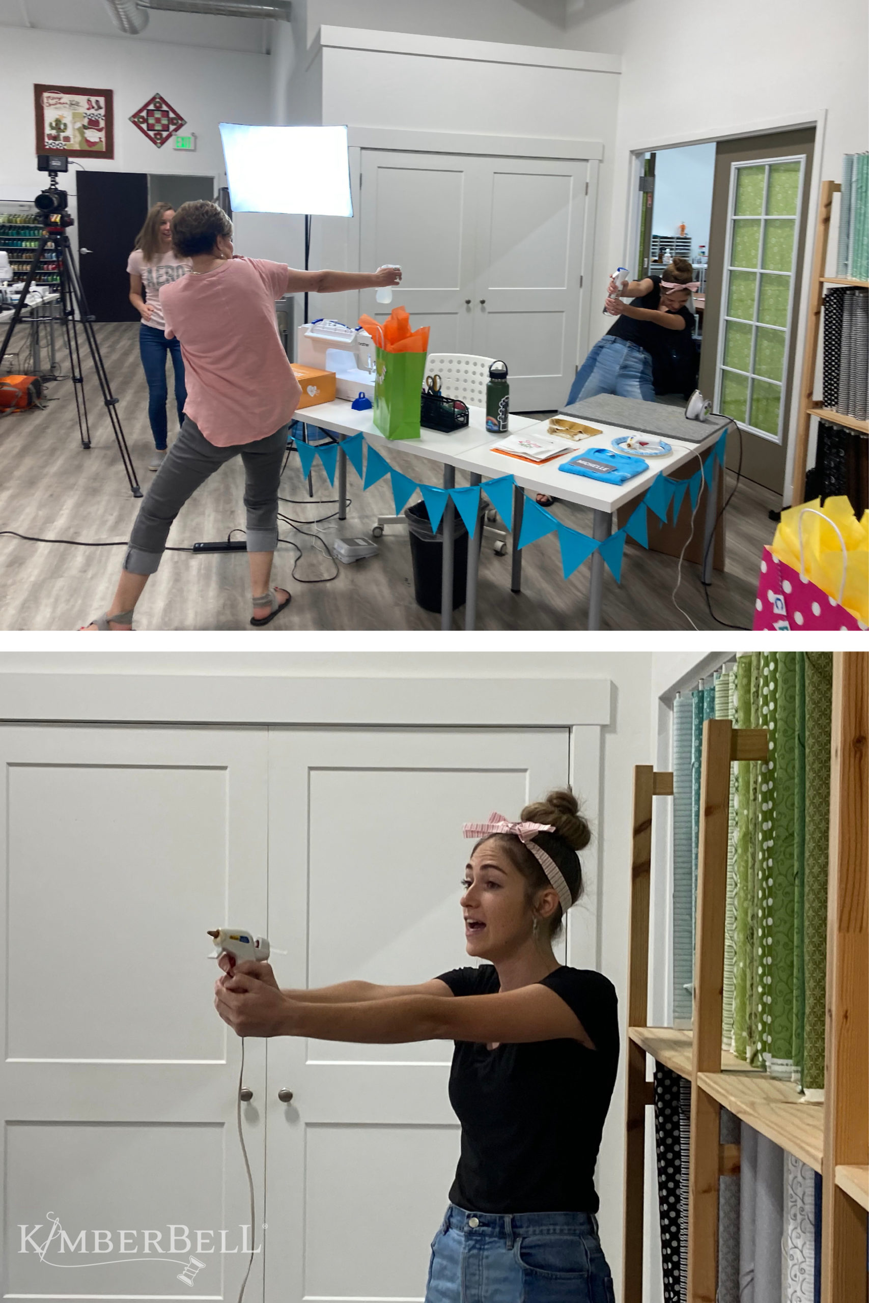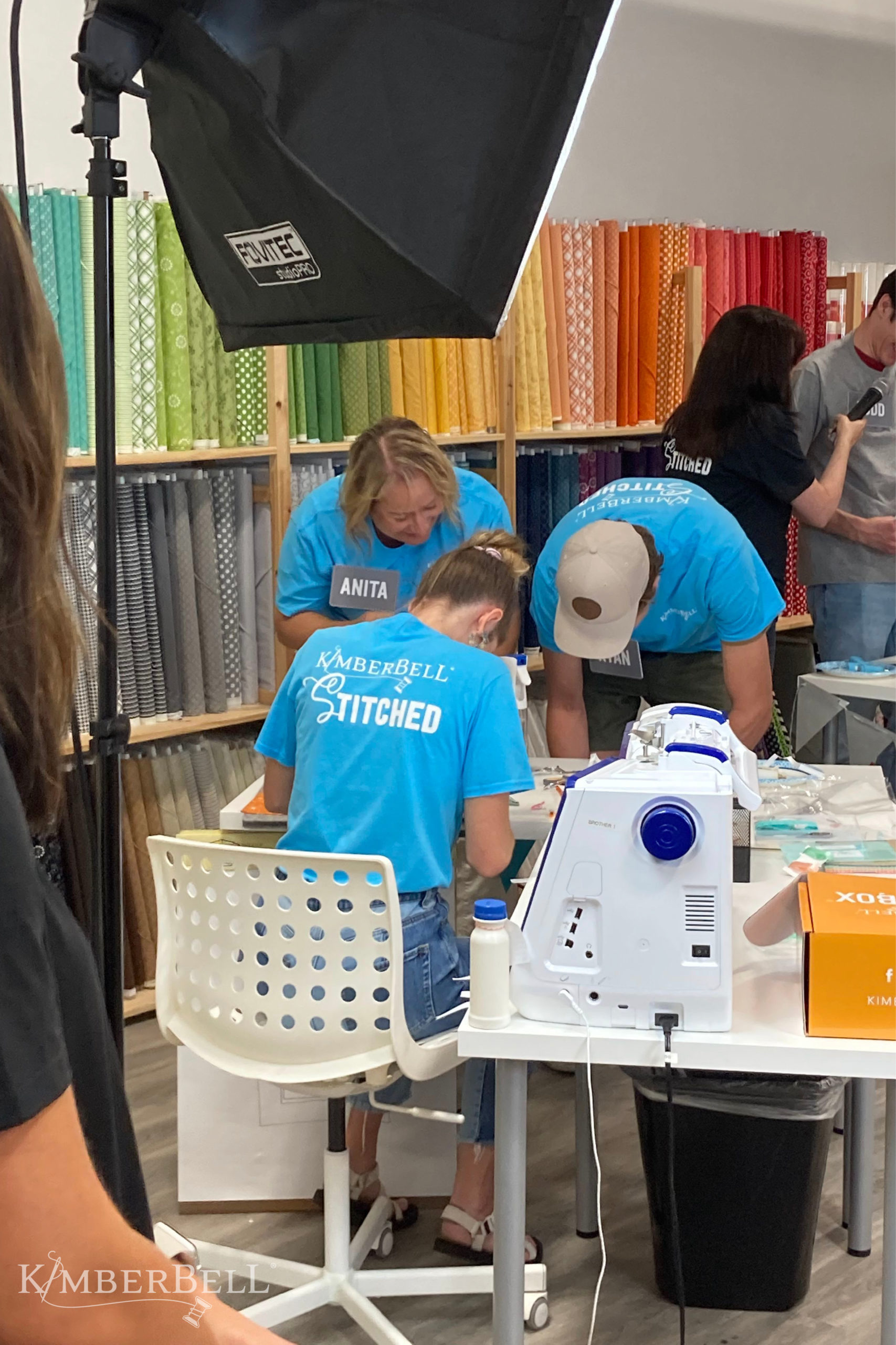 As Kim, Ryan, and the contestants took their places, the air thrummed with a tangible excitement. It was time to start! The camera people pushed their magic technological buttons and just like that, Stitched was rolling. Although the show was pre-filmed to ensure the best viewing experience for you, there were no retakes. No script. No teleprompters. Just 30 minutes of head-to-head creativity, brought to you by the competitive Kimberbell teams.