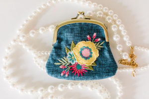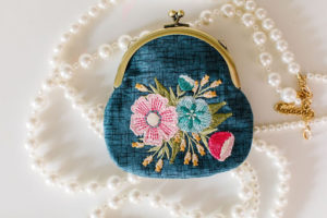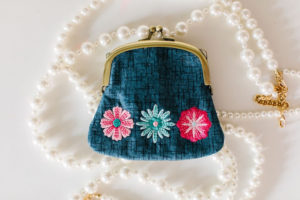 *Note: At Kimberbell’s Vintage Flora Spark Event, the attendee makes two projects: Lucy’s Lace Zipper Pouch and EITHER Pearl’s Pink Petals OR Gloria’s Golden Garden Clasp Purse. The attendee then goes home all design files, including three additional designs to stitch later: Bernadette’s Blooms, Cordelia’s Corsage, and Edith’s Bit of Eden.
