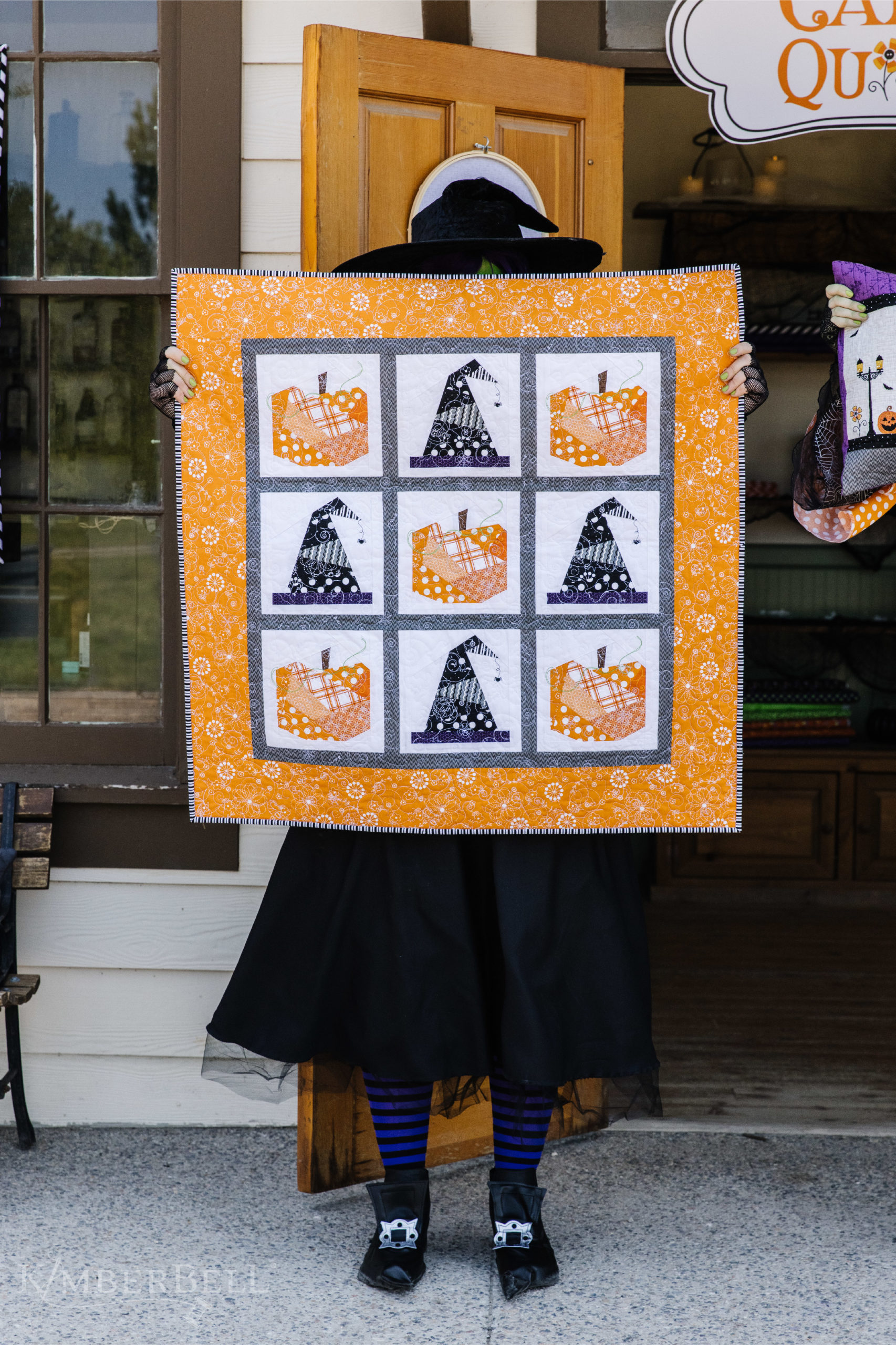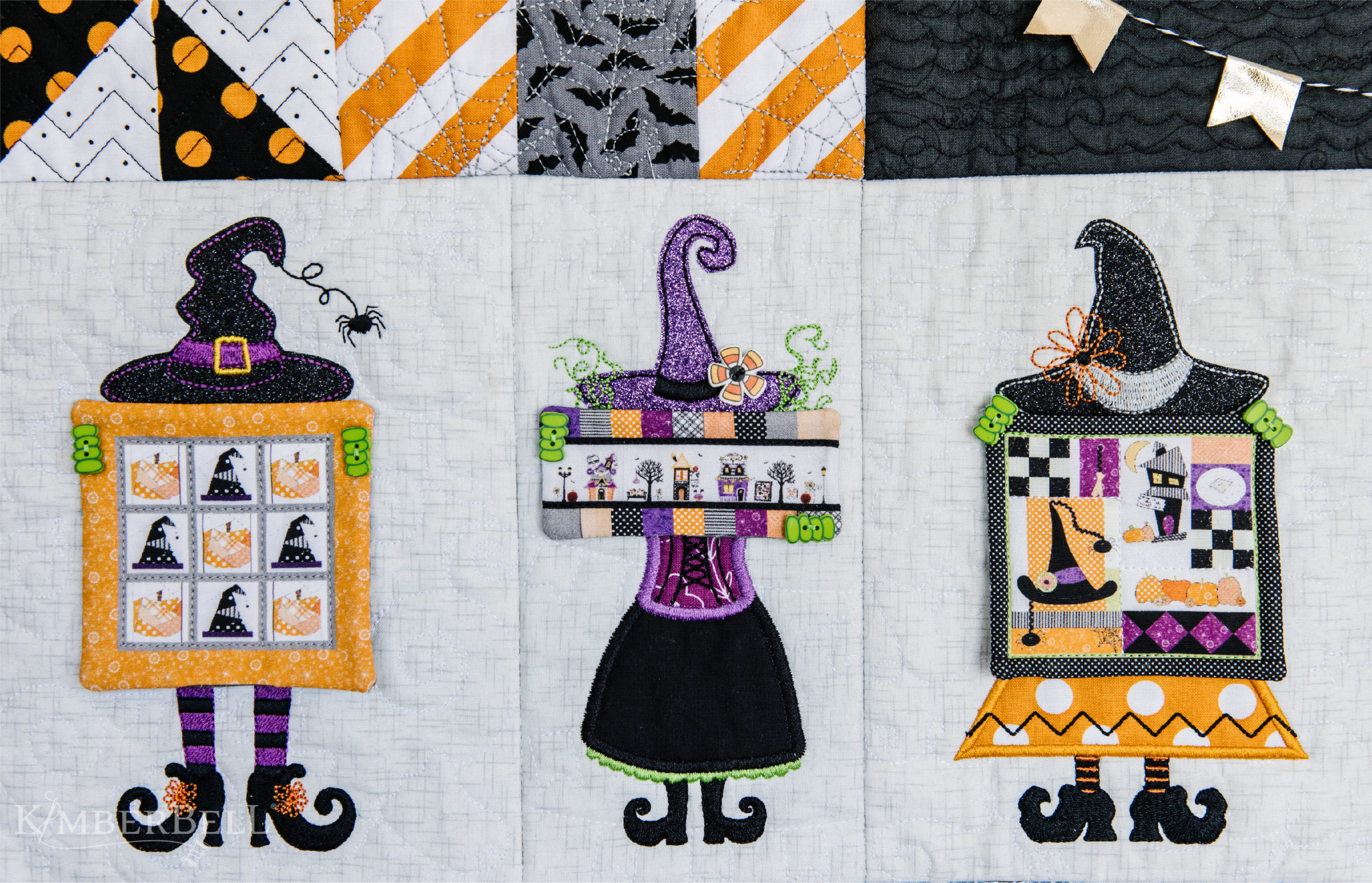 P.S. A big shoutout to Jessee, Jensyn, and Katie from Kimberbell's Product Development Team. Not only did they bring our three witches to life, they also stitched and tested both the sewing and machine embroidery versions of Candy Corn Quilt Shoppe!