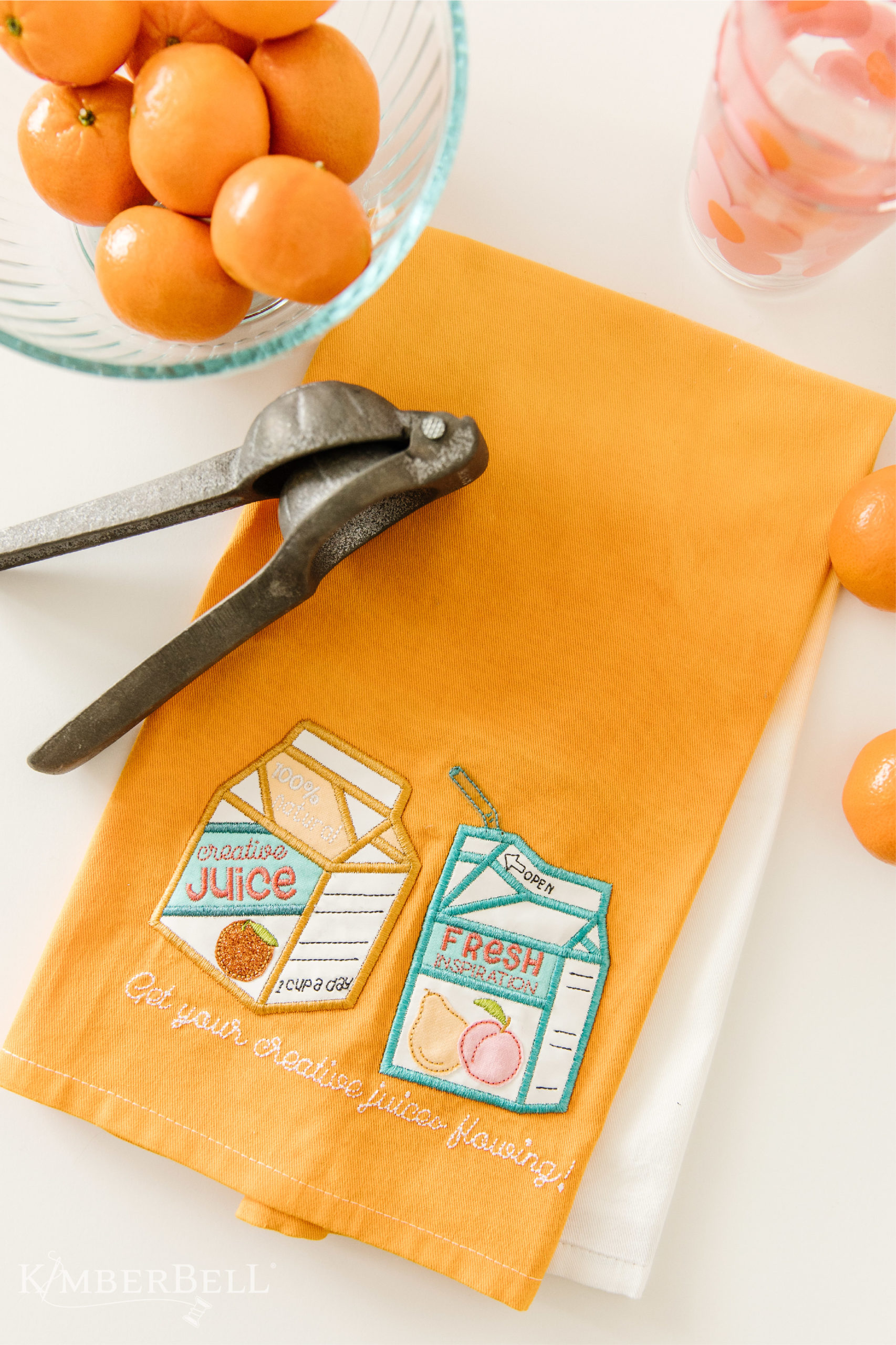 “Get your creative juices flowing!” Stitch a tangerine tea towel, hand-dyed in gorgeous ombré color, and add a splash of Applique Glitter for some extra zest. You might say our “Creative Juices” Tea Towel is an a“peel”ing project for every machine embroidery enthusiast. :) (Sorry, I just couldn't help it.)