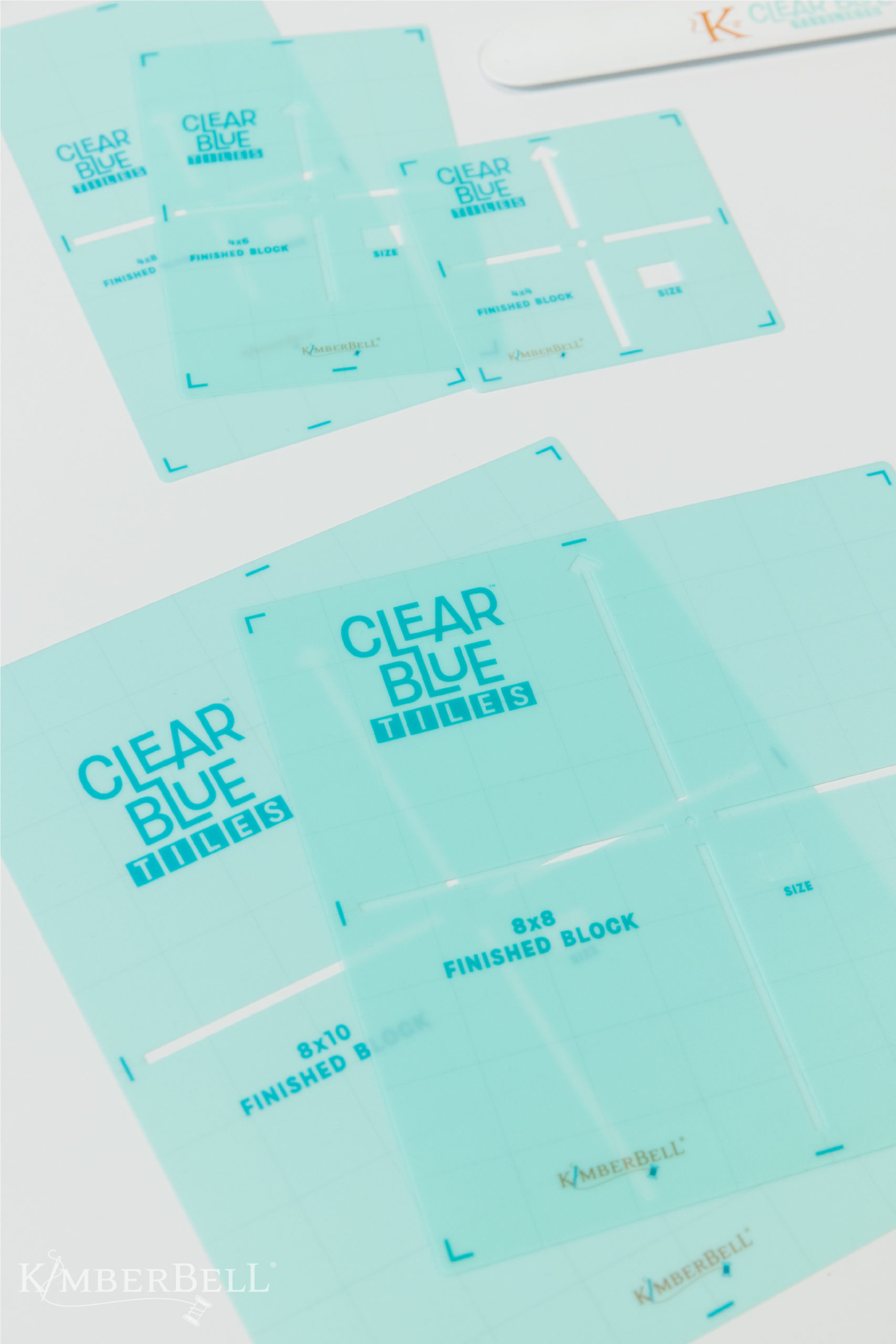 My friends, they're going to change your life. Kimberbell Clear Blue Tiles™ make it possible to stitch background quilting designs through layers of top fabric, batting, and back fabric on home embroidery machines. You can do allover quilting for a continuous flow, or customize each block with a different design! Simply choose your tile, mark your fabric, and pick the embroidery file to match the size. Clear Blue Tiles are a complete quilting system that works beautifully with even the smallest of hoops for lap quilts, baby blankets, Kimberbell® Bench Pillows, feature quilts, table runners, and so much more...