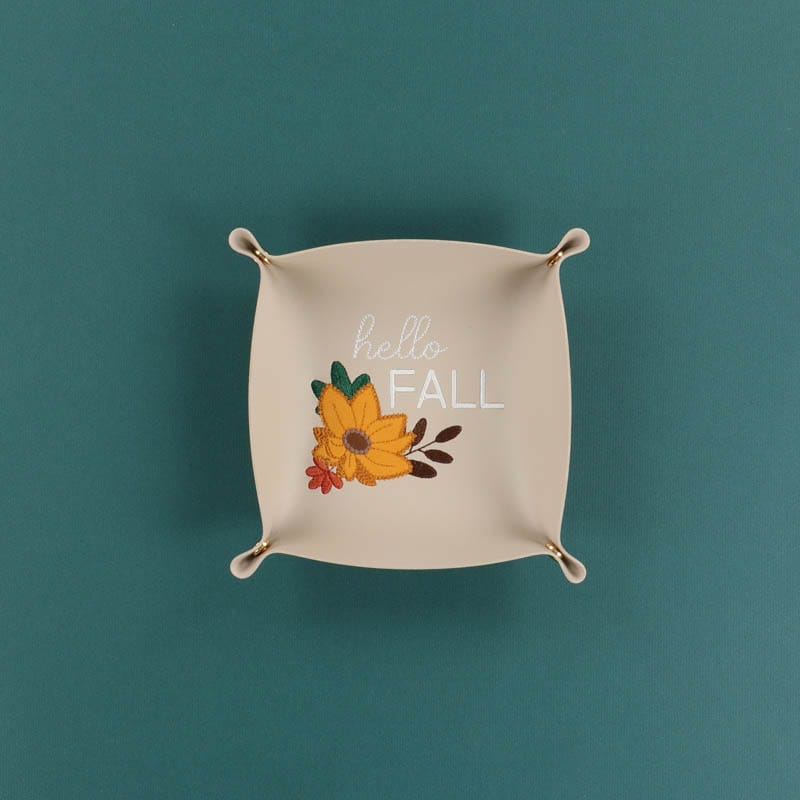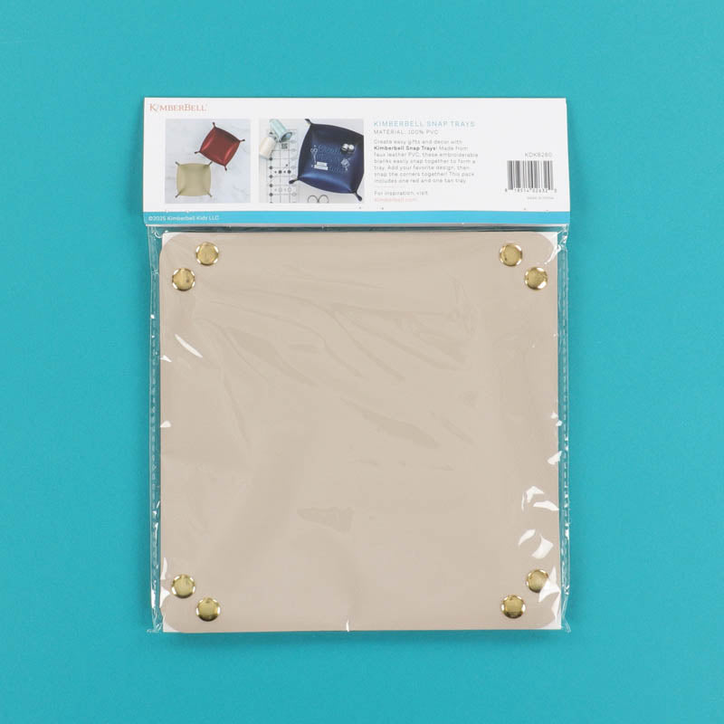 Create easy gifts and decor with Kimberbell Snap Trays! Made from faux leather PVC, these embroiderable blanks easily snap together to form a tray. Add your favorite design, then snap the corners together! This pack includes one red and one tan tray.