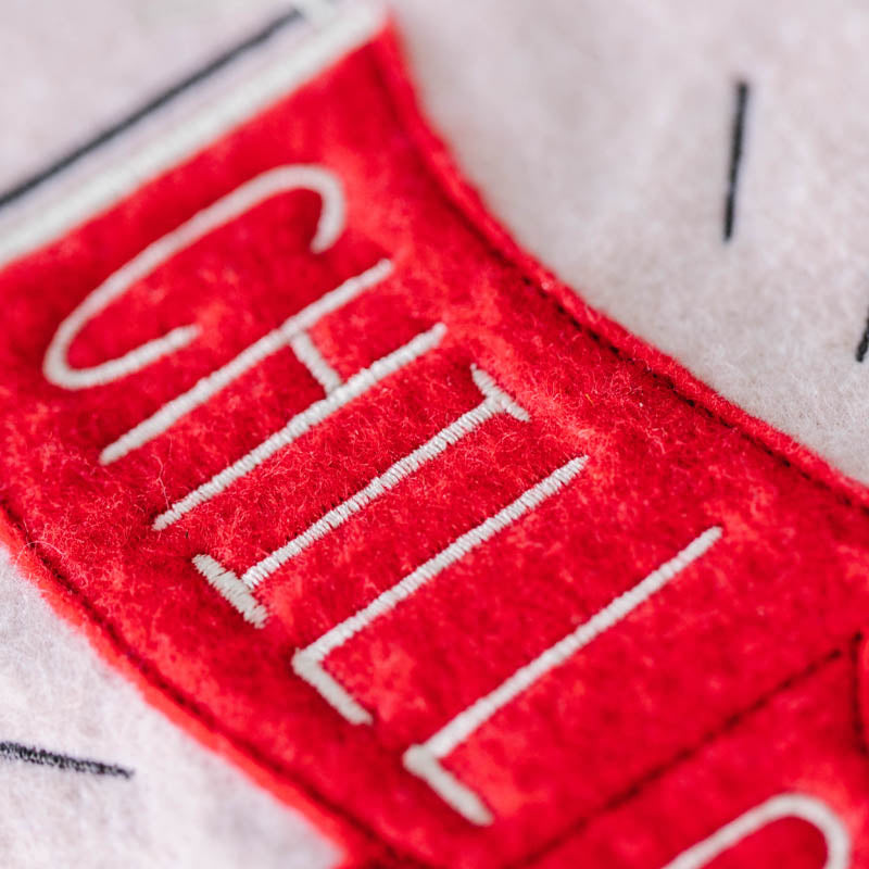 Chill Out is a snarky applique for a variety of uses! Stitch the pennant design with soft Embroidery Felt trimmed in raw-edge applique and surround it with satin stitch starbursts. Available in three sizes for 4x4, 5x7, and 6x10 hoops, Chill Out is perfect for use with Kimberbell blanks such as totes, aprons, cinch sacks, and more!