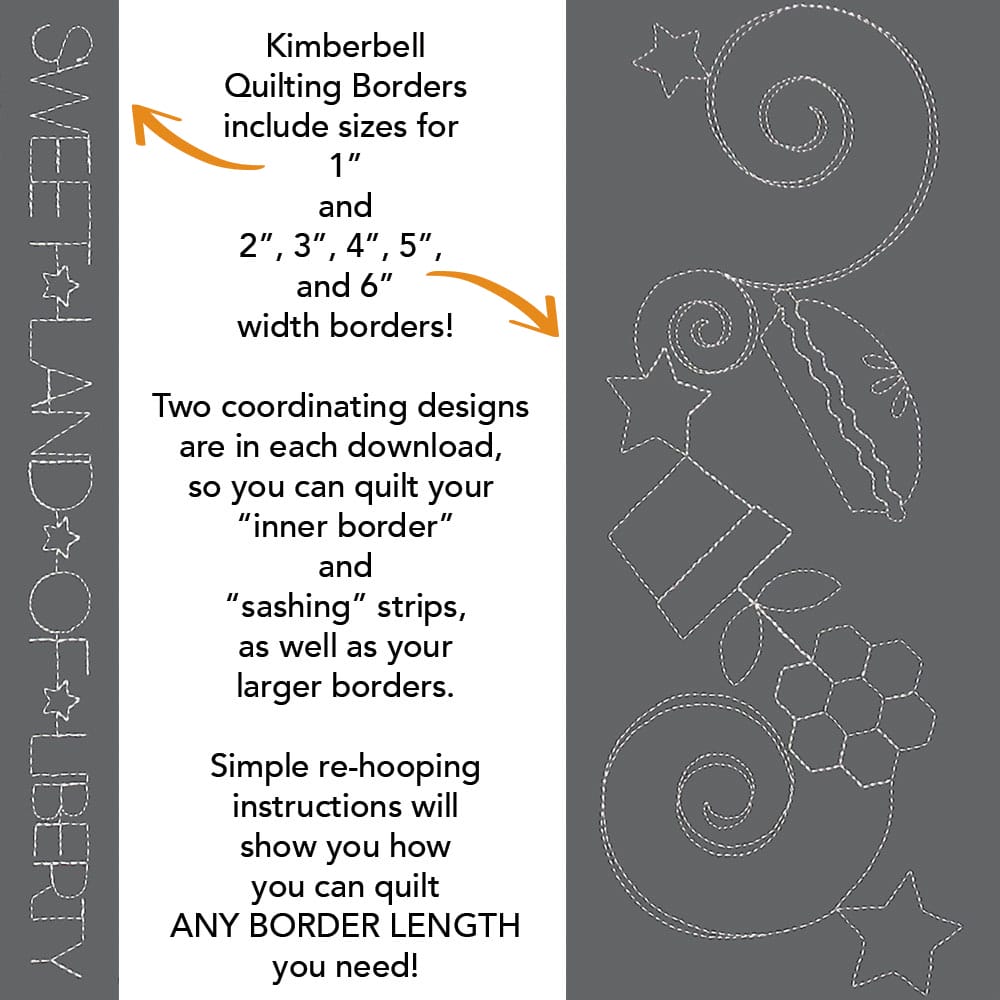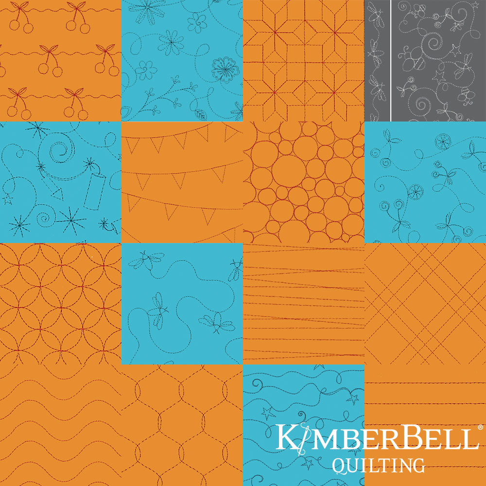 Take your projects to the next level with Kimberbell Background Quilting! Stitched right in-the-hoop, these digital files make it possible to quilt your projects on your home embroidery machine. Use our Block-by-Block method for individual blocks or achieve the look of professional longarm quilting with Kimberbell Clear Blue Tiles!®
