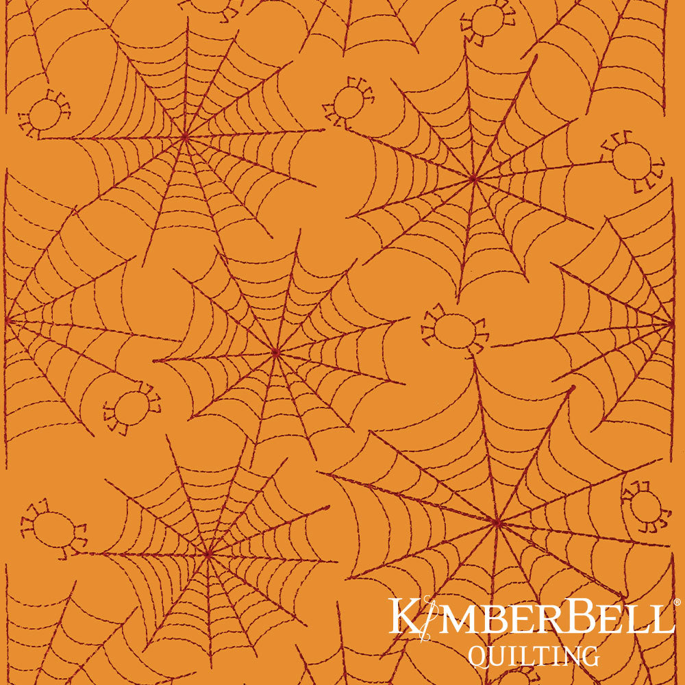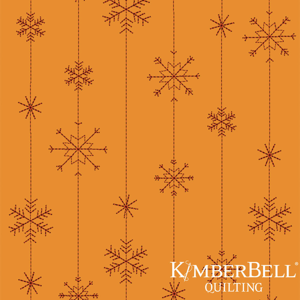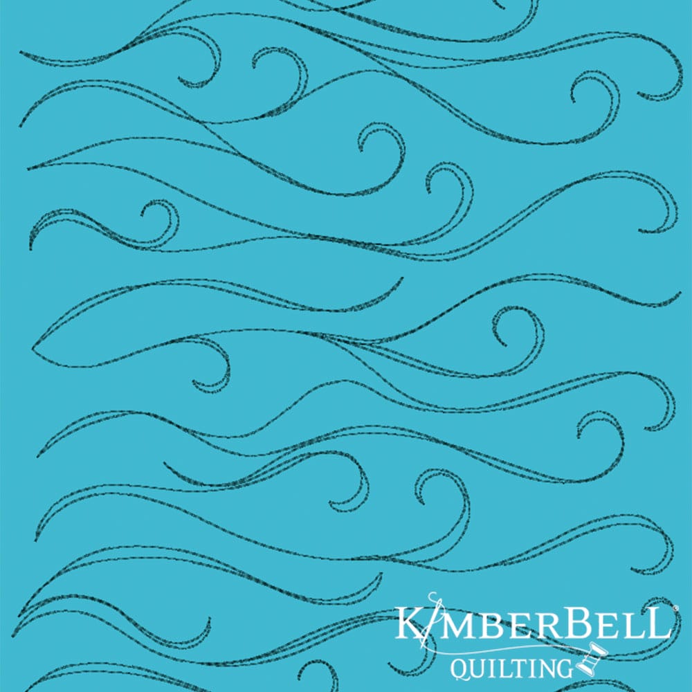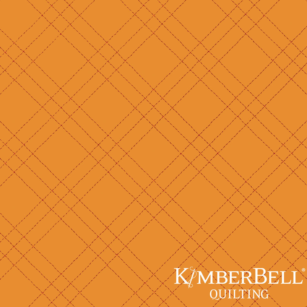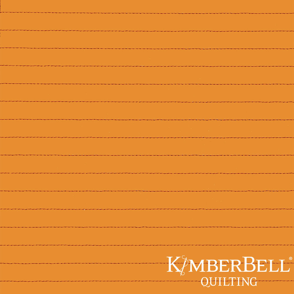Patterned fabric with wavy lines on a orange background, featuring Kimberbell Quilting logo.
