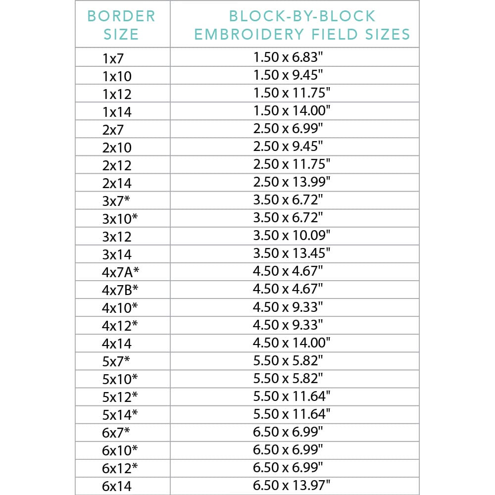 Kimberbell’s innovative background quilting system takes your machine embroidery projects to the next level of wow! Build your Block-by-Block quilting collection with border designs that coordinate with Kimberbell’s most common block sizes.