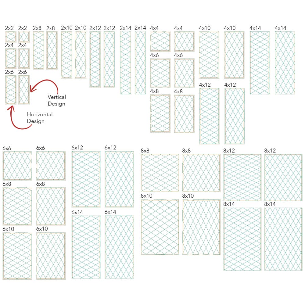 *All 44 files are designed to work with embroidery hoop sizes from 4x4 to 9x14. Check the Embroidery Field Size Chart to double check your machine's capabilities for each file size.