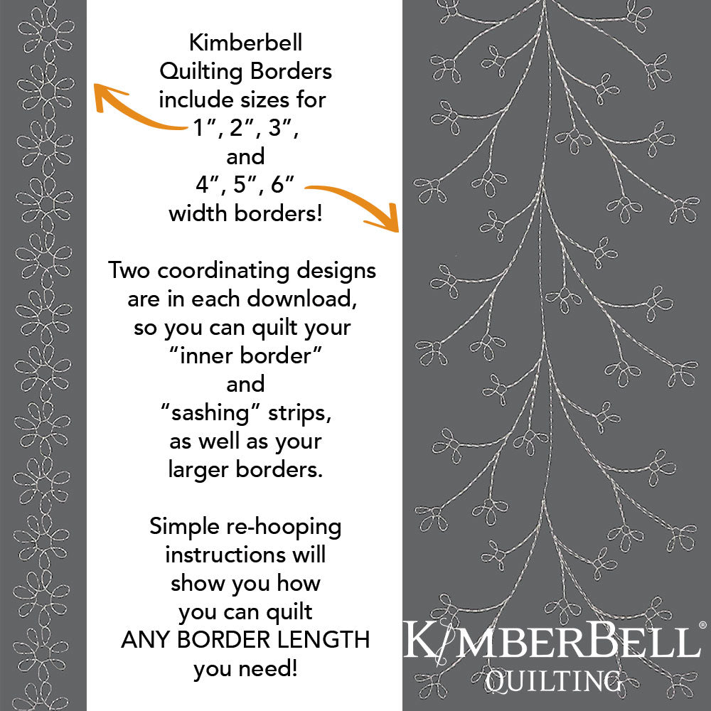 Our Floral Border 1 Background Quilting is available to use on your embroidery machine to quilt your next project with Kimberbell’s innovative Clear Blue Tiles® or Block-by-Block quilting methods.