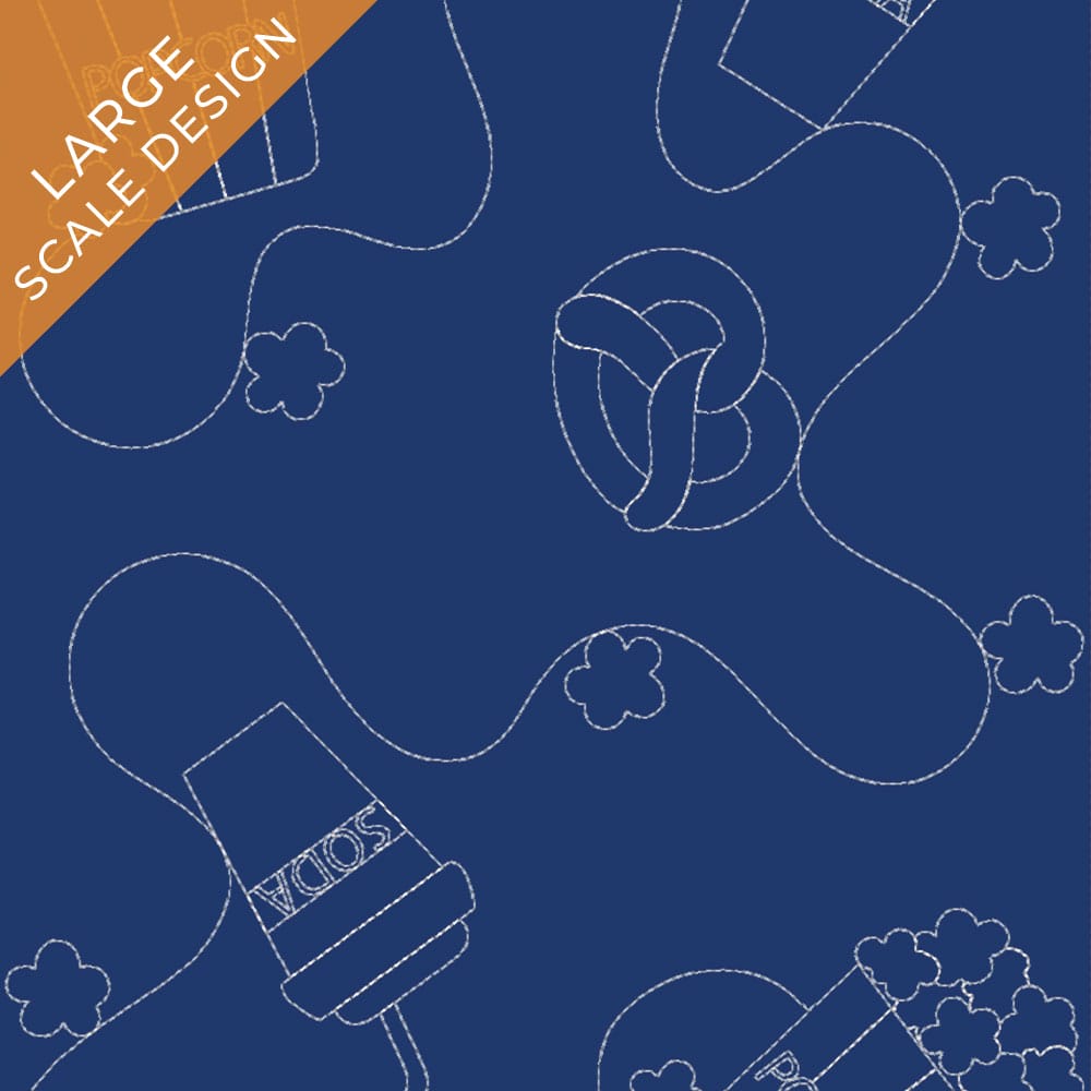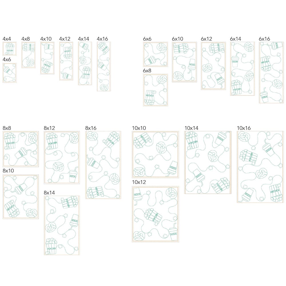 Again, your purchase of the large-scale Food 8 design includes 44 file sizes: 22 files for the Clear Blue Tiles quilting method and 22 files for the Block-by-Block quilting method. These large-scale design files fit within machine embroidery hoop sizes 4×4 to 10×16!
