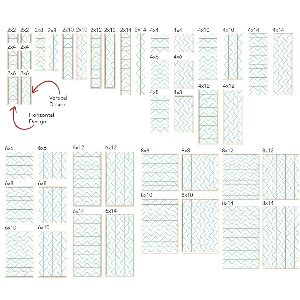 *All 44 files are designed to work with embroidery hoop sizes from 4x4 to 9x14. Check the Embroidery Field Size Chart to double check your machine's capabilities for each file size.