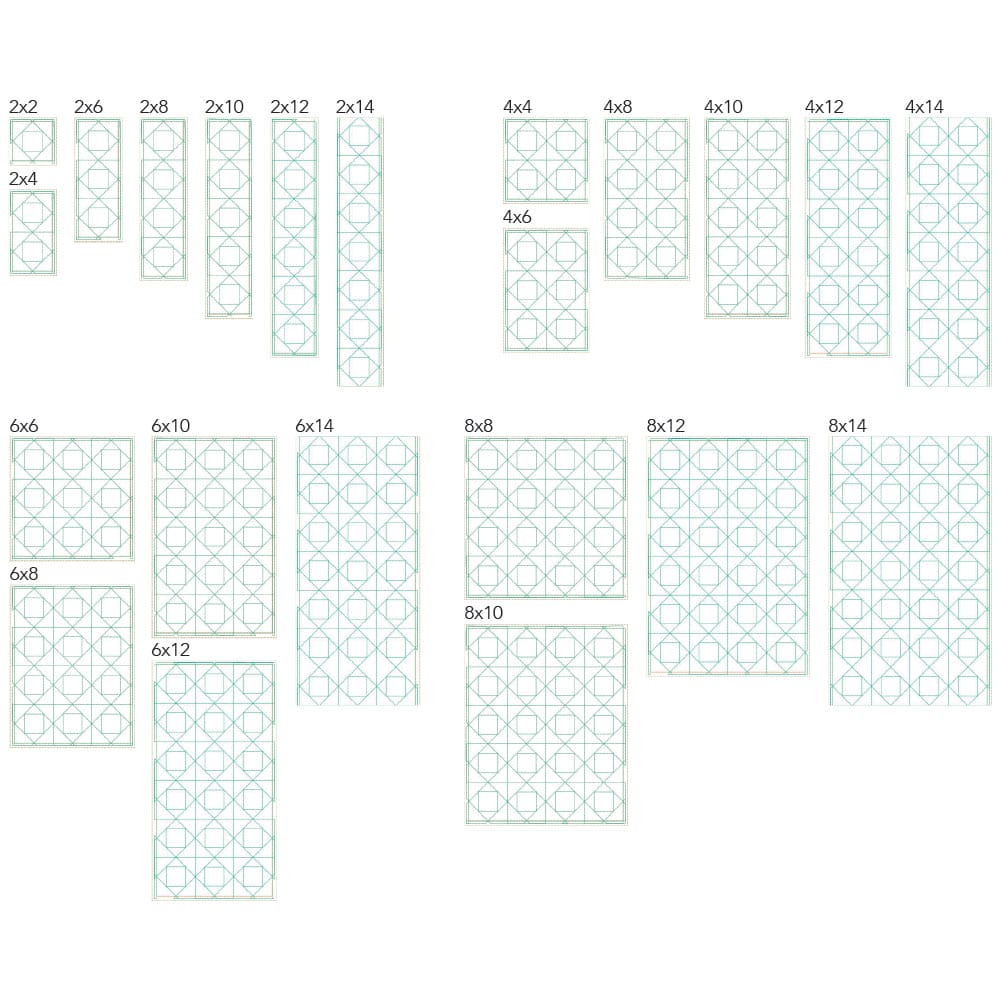 Geometric 6 Background Quilting is available to use on your embroidery machine to quilt your next project with Kimberbell’s innovative Block-by-Block quilting method. The Block-by-Block quilting method eliminates batting/bulk in the seams when sewing blocks together. Because of travel lines, this design will NOT work with Clear Blue Tiles®.