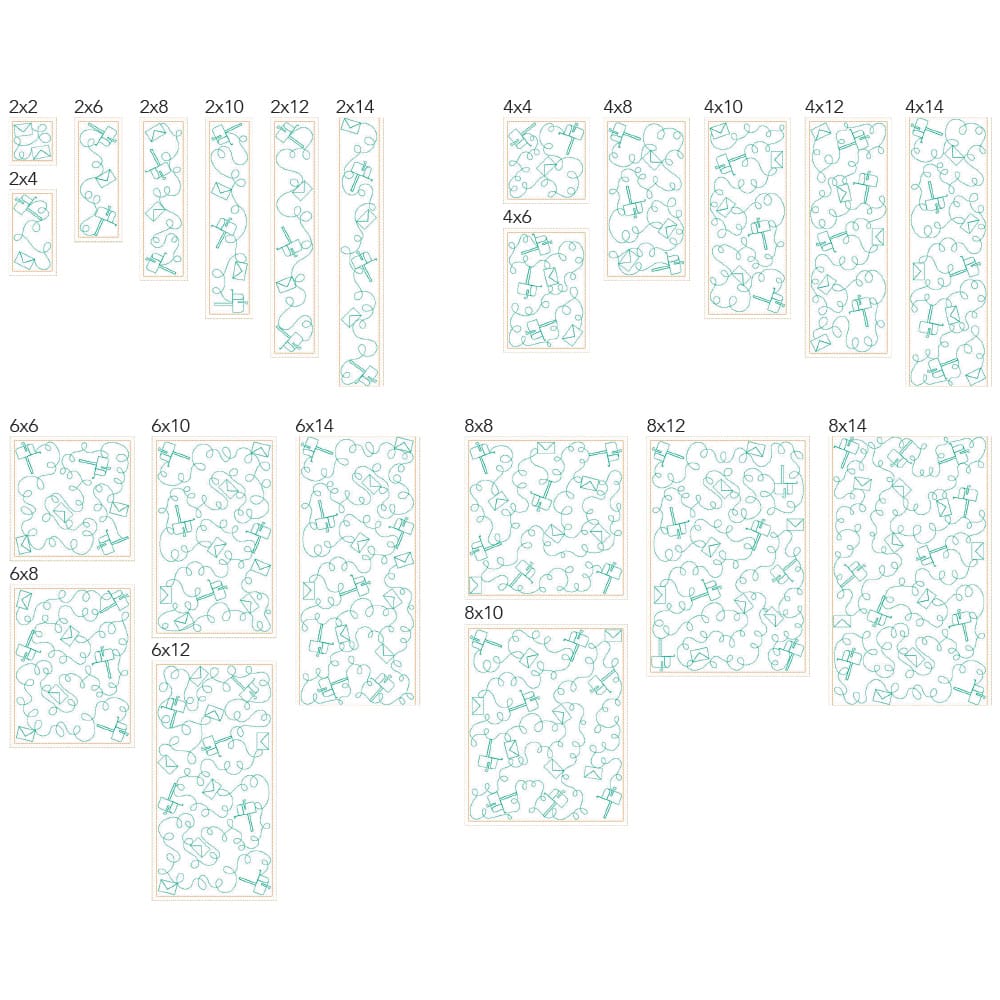 Again, your purchase of House 2 includes 44 file sizes: 22 files for the Clear Blue Tiles ® quilting method and 22 files for the Block-by-Block quilting method. Files will fit within any size of machine embroidery hoop, from 4×4 up to 9×14!