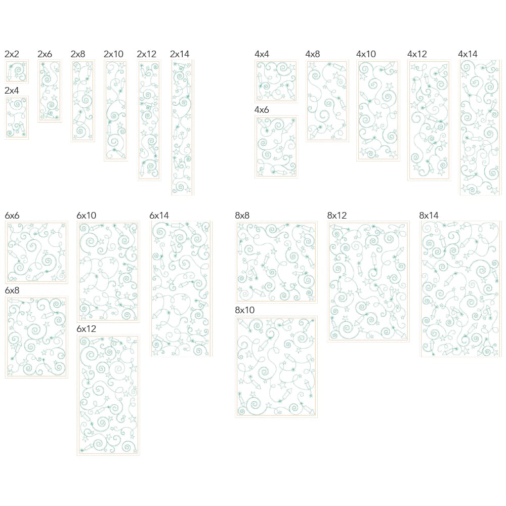 *All 22 files are designed to work with embroidery hoop sizes from 4x4 to 9x14. Check the Embroidery Field Size Chart to double check your machine's capabilities for each file size.