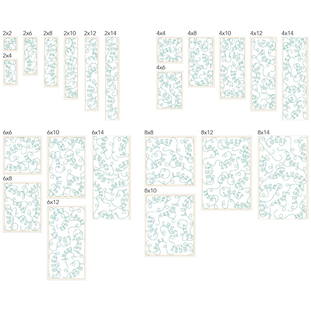 *All 22 files are designed to work with embroidery hoop sizes from 4x4 to 9x14. Check the Embroidery Field Size Chart to double check your machine's capabilities for each file size.