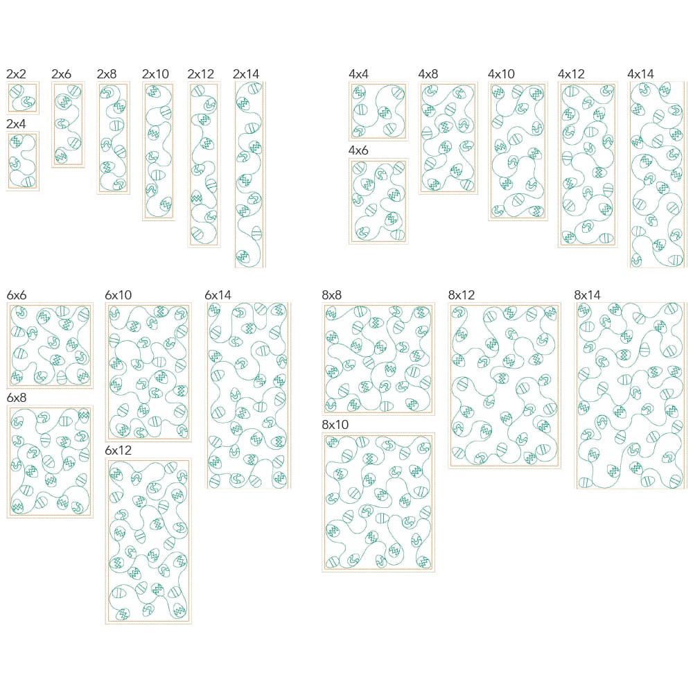 *All 22 files are designed to work with embroidery hoop sizes from 4x4 to 9x14. Check the Embroidery Field Size Chart to double check your machine's capabilities for each file size.