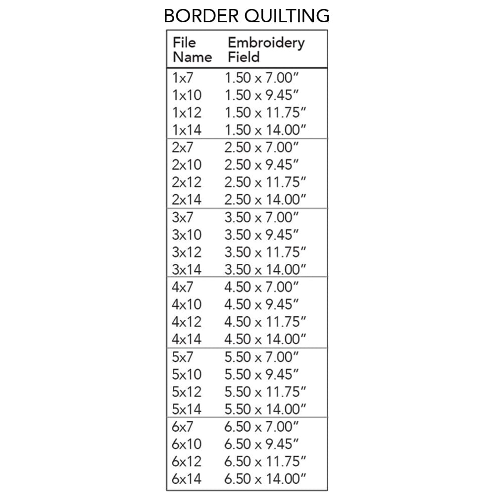 Patterns work beautifully with Orange Pop Rulers and are specially digitized to eliminate batting in the seams. For file sizes, please see SPECS for each of the included individual quilting designs.