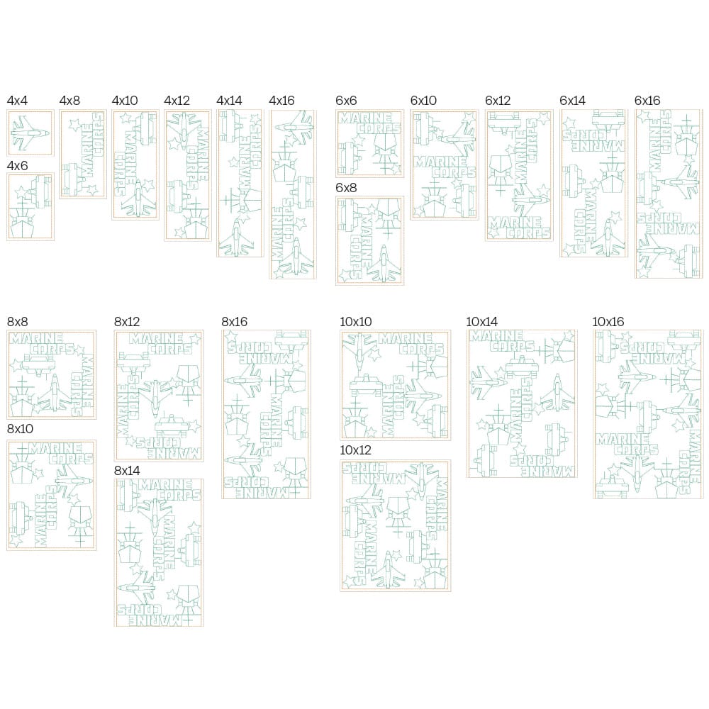 Again, your purchase of the large-scale Service 4 design includes 44 file sizes: 22 files for the Clear Blue Tiles quilting method and 22 files for the Block-by-Block quilting method. These large-scale design files fit within machine embroidery hoop sizes 4×4 to 10×16!