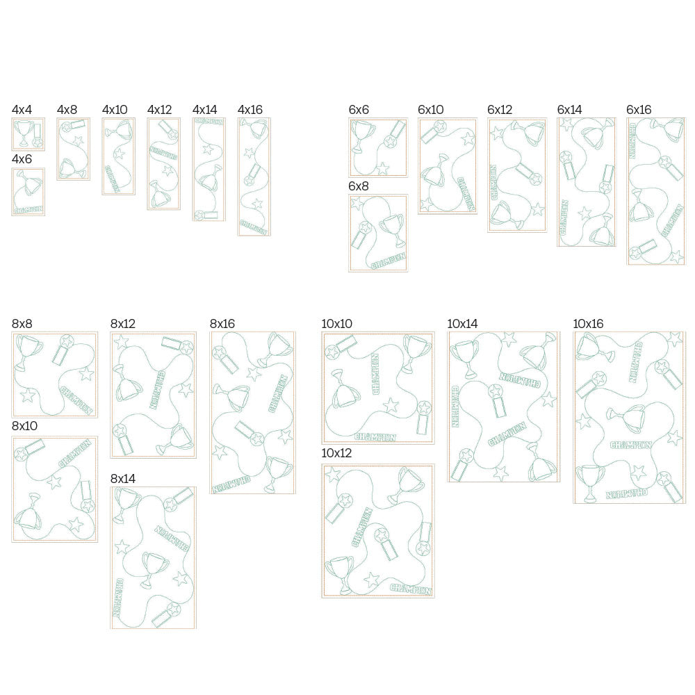 *All 22 files are designed to work with embroidery hoop sizes from 4x4 to 10x16. Check the Embroidery Field Size Chart to double check your machine's capabilities for each file size.