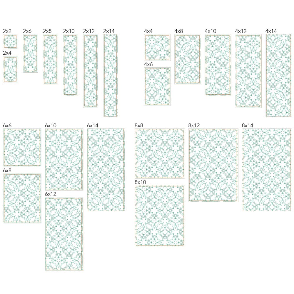 St Patricks 7 Background Quilting is available to use on your embroidery machine to quilt your next project with Kimberbell’s innovative Block-by-Block quilting method. The Block-by-Block quilting method eliminates batting/bulk in the seams when sewing blocks together. Because of travel lines, this design will NOT work with Clear Blue Tiles®.