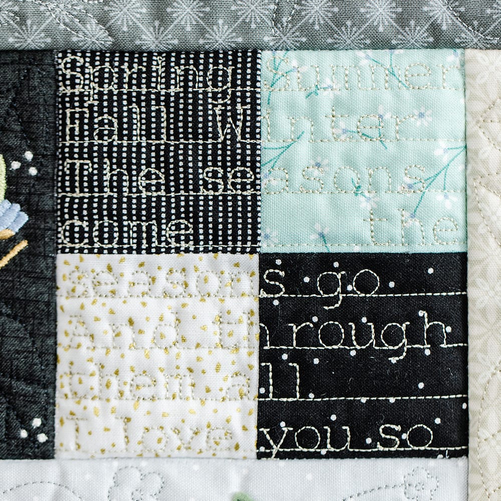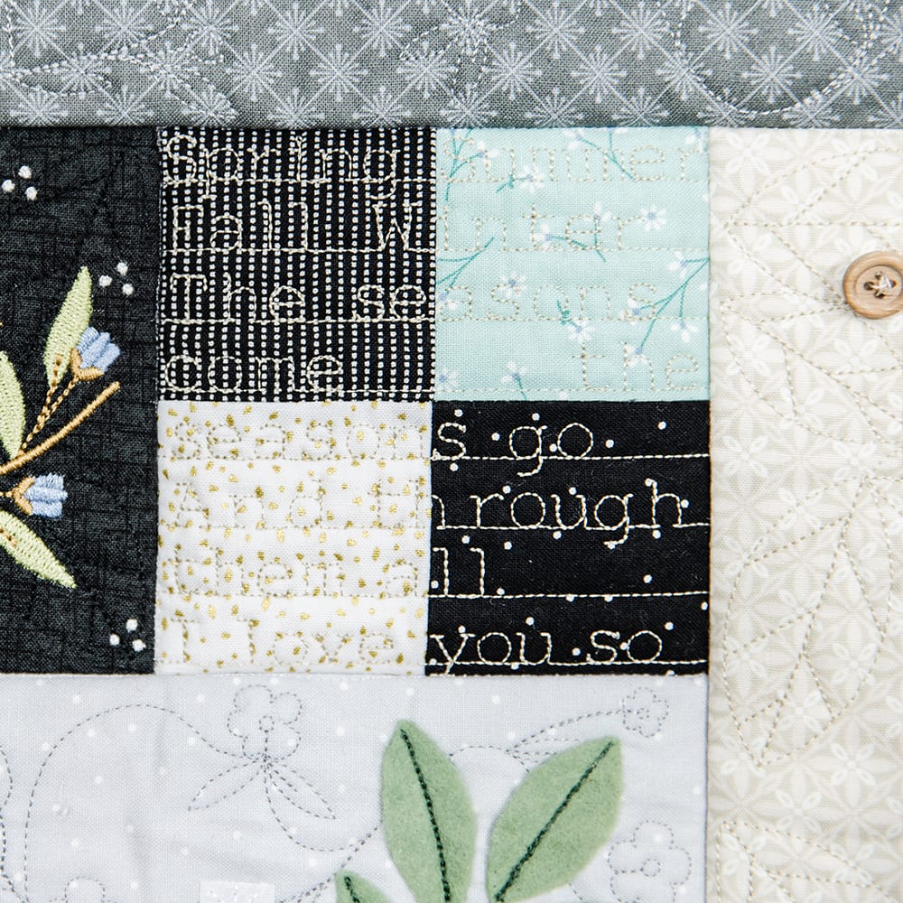 Time 1 Background Quilting is available to use on your embroidery machine to quilt your next project with Kimberbell’s innovative Block-by-Block quilting method. The Block-by-Block quilting method eliminates batting/bulk in the seams when sewing blocks together. Because of travel lines, this design will NOT work with Clear Blue Tiles®.