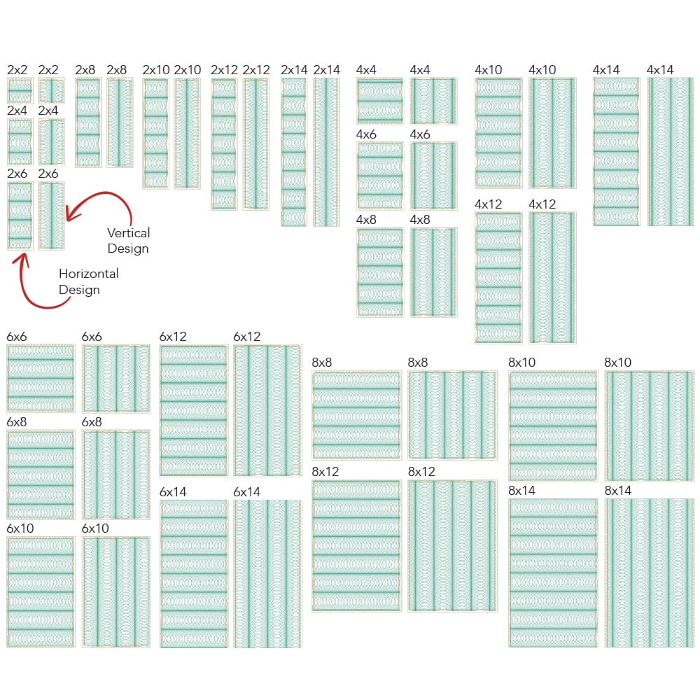 *All 44 files are designed to work with embroidery hoop sizes from 4x4 to 9x14. Check the Embroidery Field Size Chart to double check your machine's capabilities for each file size.