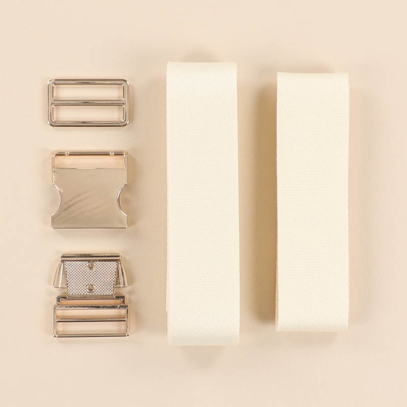 Kimberbell’s Belt Bag Kit includes (1) 1 ½” metal buckle, (1) 1 ¾” metal slider, and two lengths of sturdy cream webbing: (1) 41.7” and (1) 15”. Use the slider to create an adjustable strap and the buckle for a secure hold! Perfect for crossbody bags, fanny packs, purses, and more, our Belt Bag Kit is also ideal for use with Kimberbell Zipper Pouch Blanks.