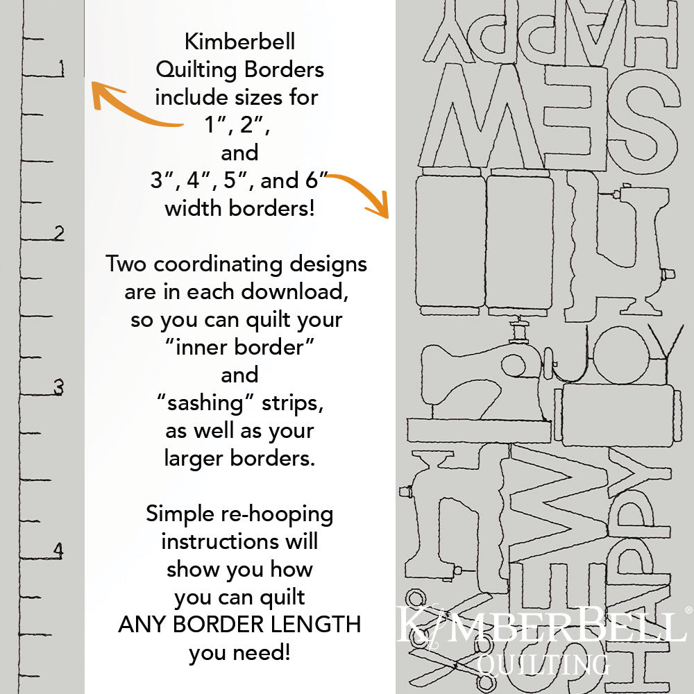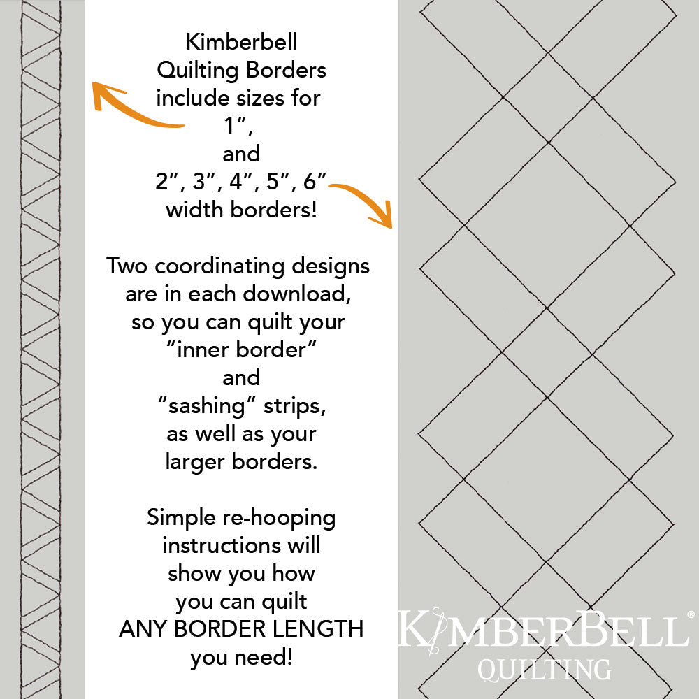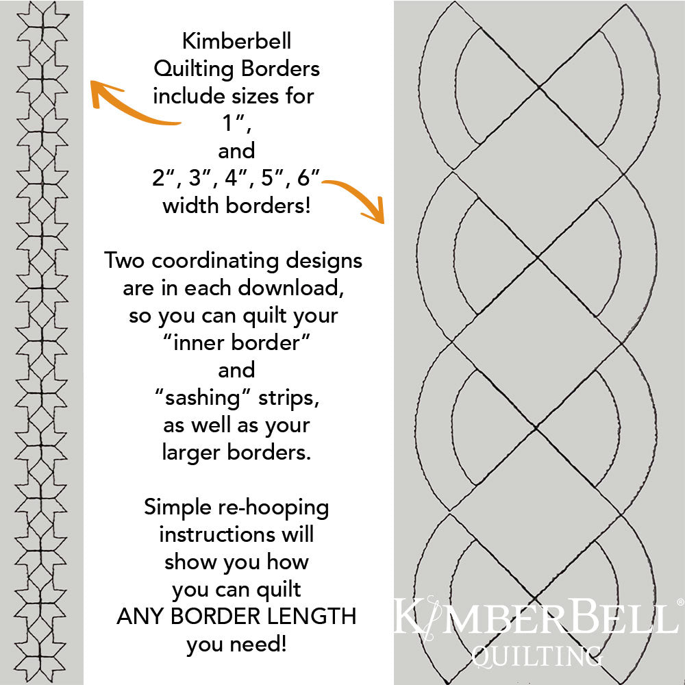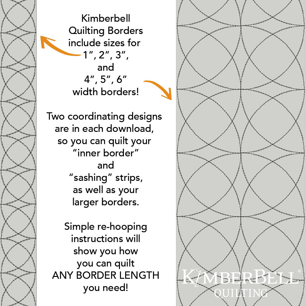 Finish quilt borders with Kimberbell Light Grey Quilting Designs! These elegant Block-by-Block border quilting patterns are specially digitized to add continuous quilting around the borders of your project—comparable to traditional longarm borders, but stitched right on your home embroidery machine.