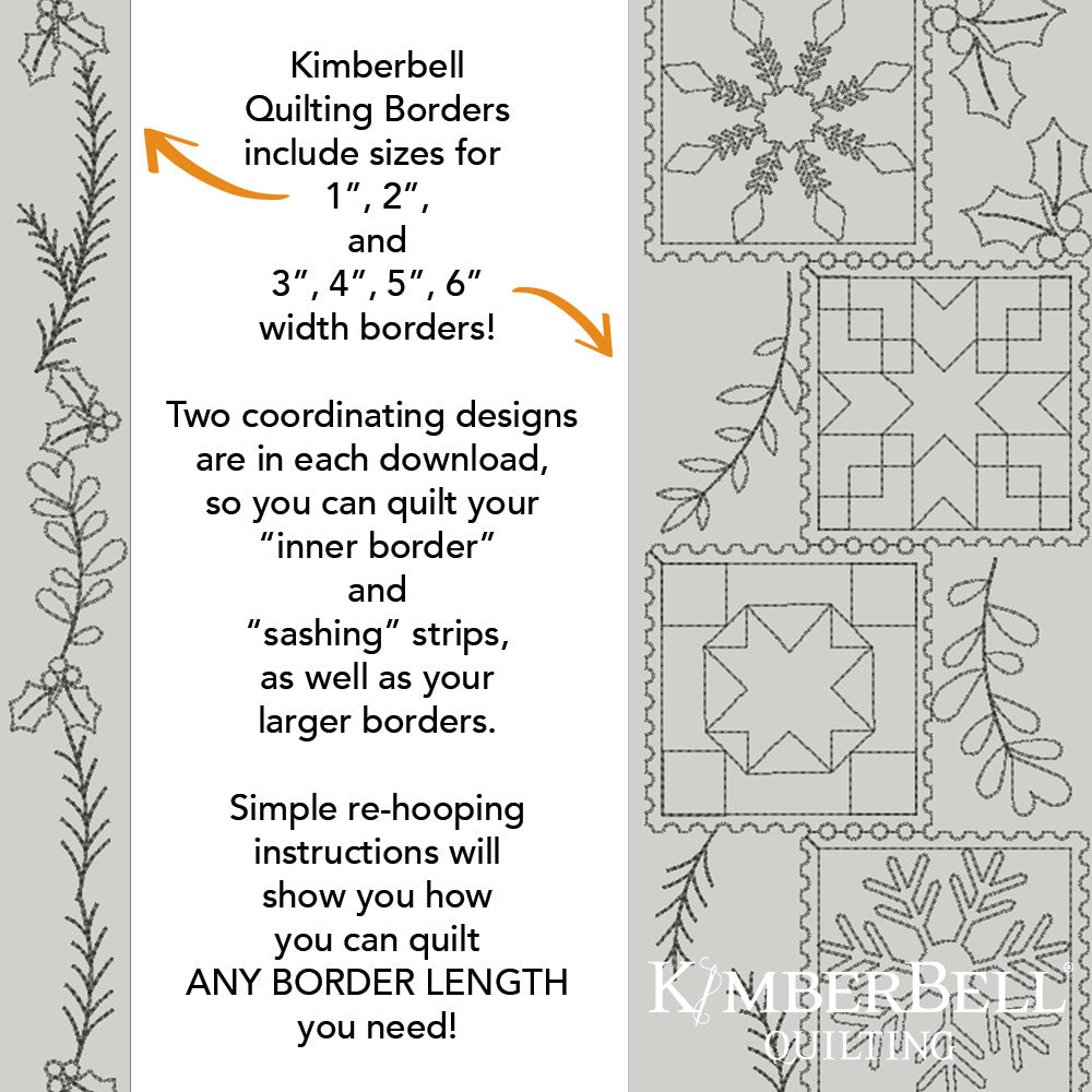 Our Christmas Border 7 Background Quilting is available to use on your embroidery machine to quilt your next project with Kimberbell’s innovative Block-by-Block quilting method. It will NOT work with Clear Blue Tiles.