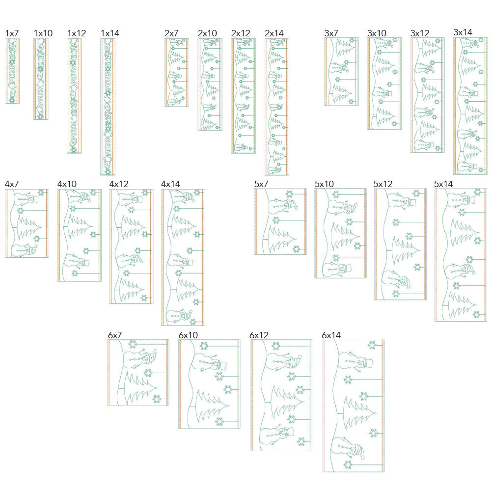 *All 24 files are designed to work with embroidery hoop sizes from 5x7 to 9x14. Check the Embroidery Field Size Chart to double check your machine's capabilities for each file size.