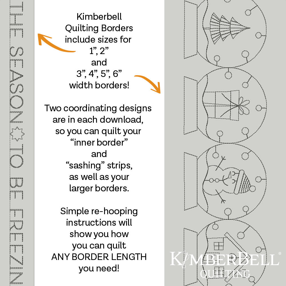 Our Winter Border 3 Background Quilting is available to use on your embroidery machine to quilt your next project with Kimberbell’s innovative Block-by-Block quilting method. It will NOT work with Clear Blue Tiles.