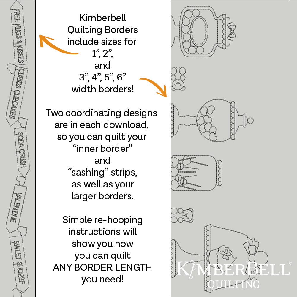 Our Candy Border 1 Background Quilting is available to use on your embroidery machine to quilt your next project with Kimberbell’s innovative Block-by-Block quilting method. It will NOT work with Clear Blue Tiles.
