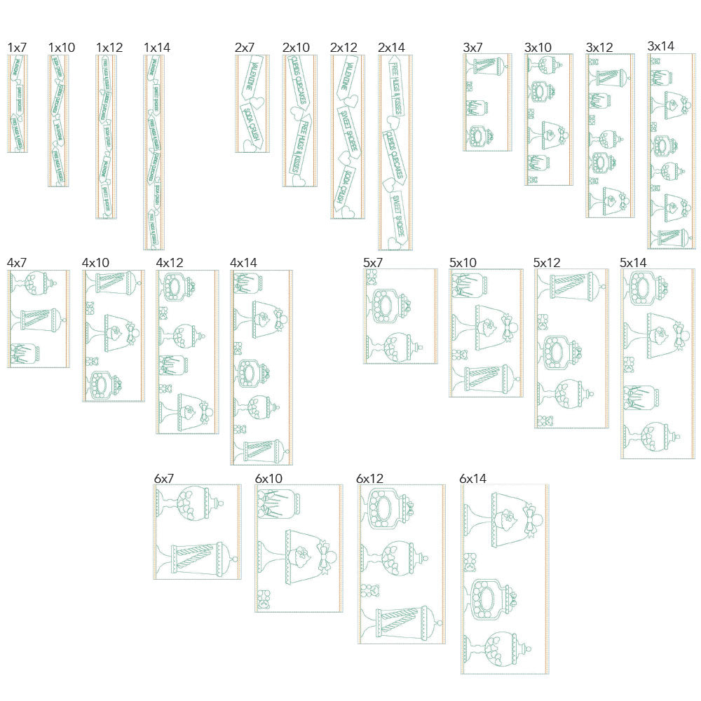 *All 24 files are designed to work with embroidery hoop sizes from 5x7 to 9x14. Check the Embroidery Field Size Chart to double check your machine's capabilities for each file size.