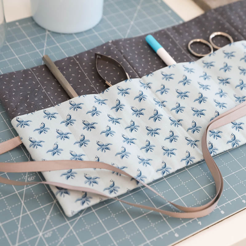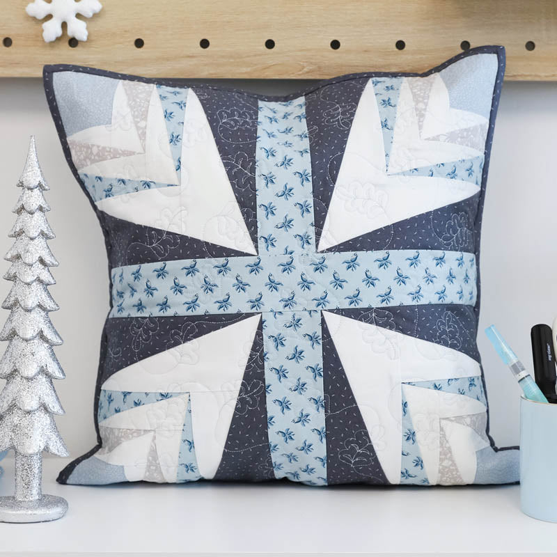 Create classic decor with the December Perfectly Pieced box! Our Palm Leaf Block features fabulous Cocoa Blue and Natale Doily Grigio prints from Andover Fabrics, as well as cool selections from FIGO, Lewis & Irene, Riley Blake, and Robert Kaufman. Follow our full-color, step-by-step instructions to create pillows, table toppers, and more, and don’t forget our special project, the 8 x 24” Organizer Roll with 10 handy pockets!