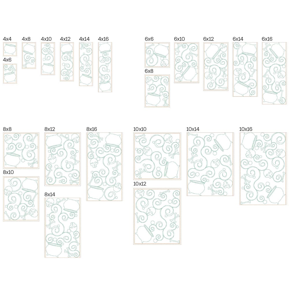 *All 22 files are designed to work with embroidery hoop sizes from 4×4 to 10×16. Check the Embroidery Field Size Chart to double check your machine’s capabilities for each file size.