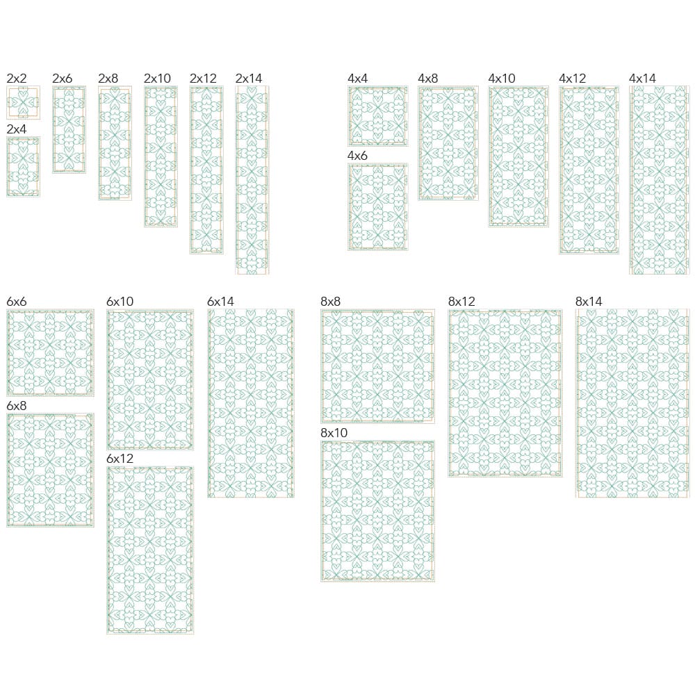 Hearts 7 Background Quilting is available to use on your embroidery machine to quilt your next project with Kimberbell’s innovative Block-by-Block quilting method. The Block-by-Block quilting method eliminates batting/bulk in the seams when sewing blocks together. Because of travel lines, this design will NOT work with Clear Blue Tiles®.