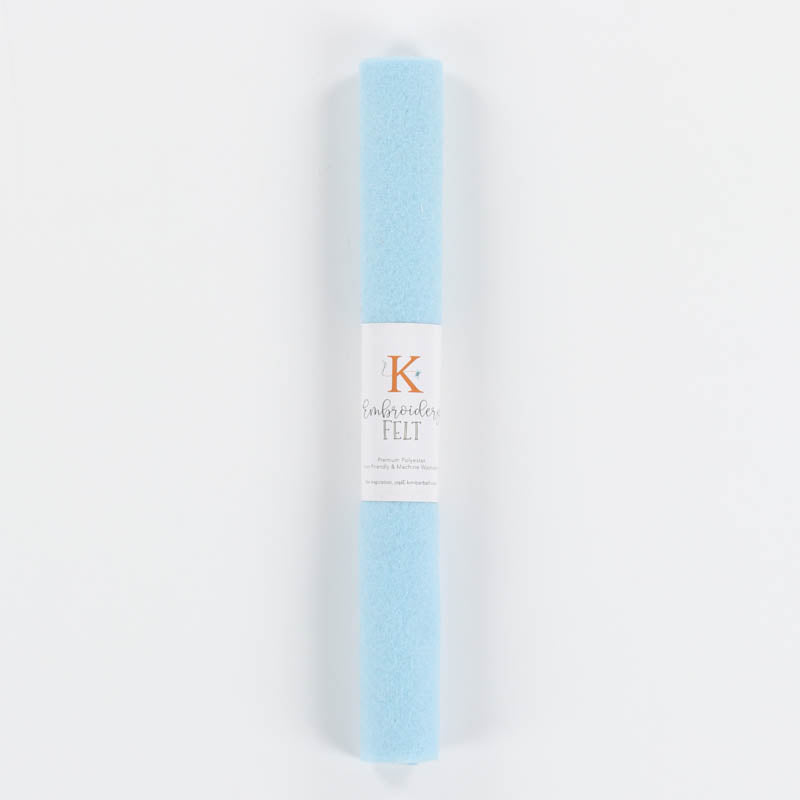 Soft and fun to stitch, Kimberbell’s Ice Blue Embroidery Felt comes as a 12x18” sheet and is a beautiful touch for a variety of machine embroidery, sewing, and craft projects!