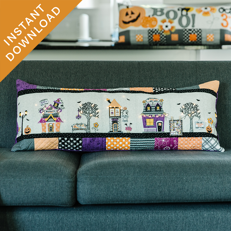 Twilight Boo-levard is where you’ll find all your favorite “haunts!” Stop into Bella’s Boo-tique for their grand opening, then rest a spell beneath a spooky old tree. The boo-berry pie from Broomhilda’s Bakery is simply “to die for!” Enjoy a slice, then pop into the Candy Corn Quilt Shoppe! Our Twilight Boo-levard Bench Pillow is so enchanting, it’s almost scary.