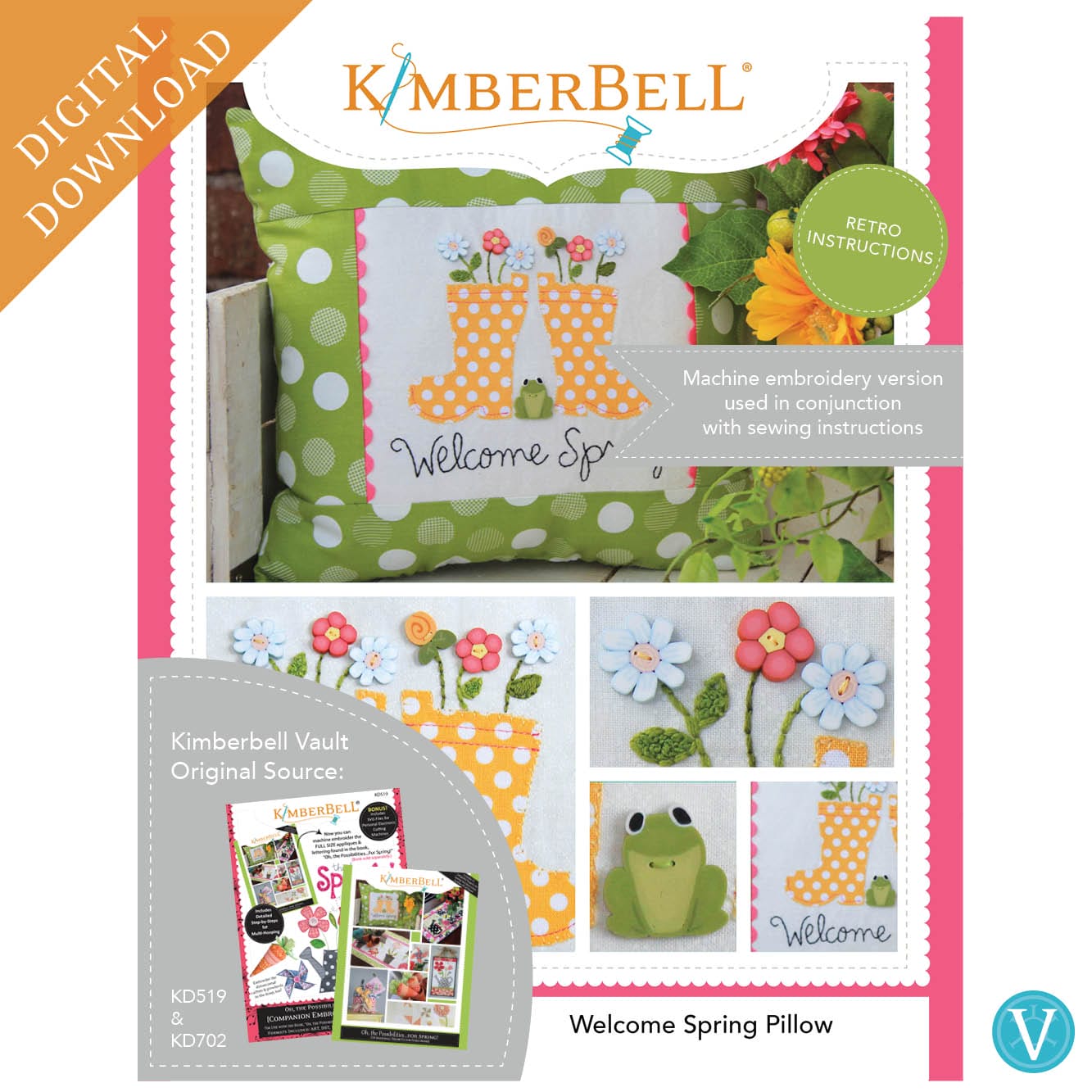 “Welcome Spring” with Kimberbell’s 11 x 12” pillow! Tiny blossoms peek from the top of a pair of rain boots, with perky petals and centers as Cute as a Button. Complete your pillow with a pop of rickrack trim and delightful assortment of spring buttons!