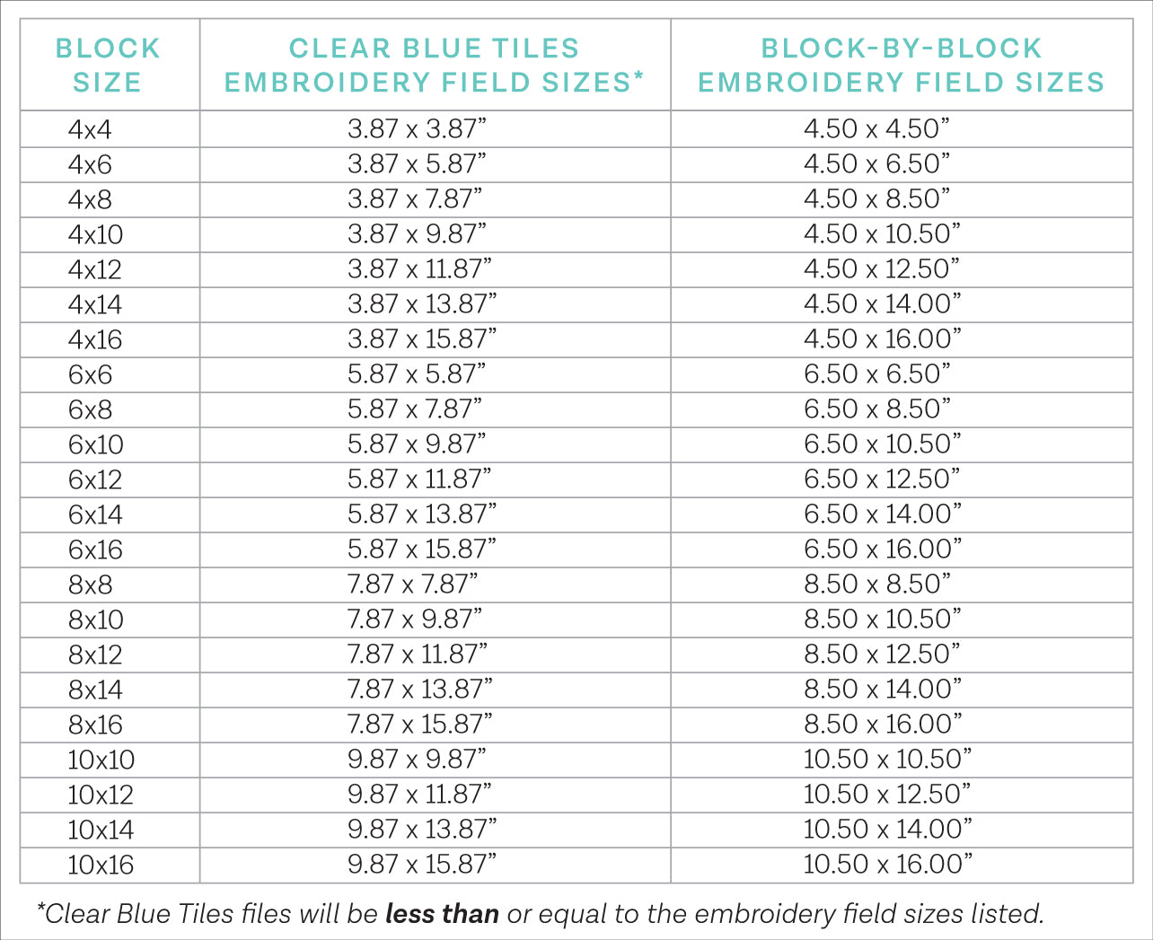 22 file sizes for Clear Blue Tiles quilting (compatible with Clear Blue Tiles (Expansion Set 2, Expansion Set, and Essentials Set tiles 4×4 and bigger)