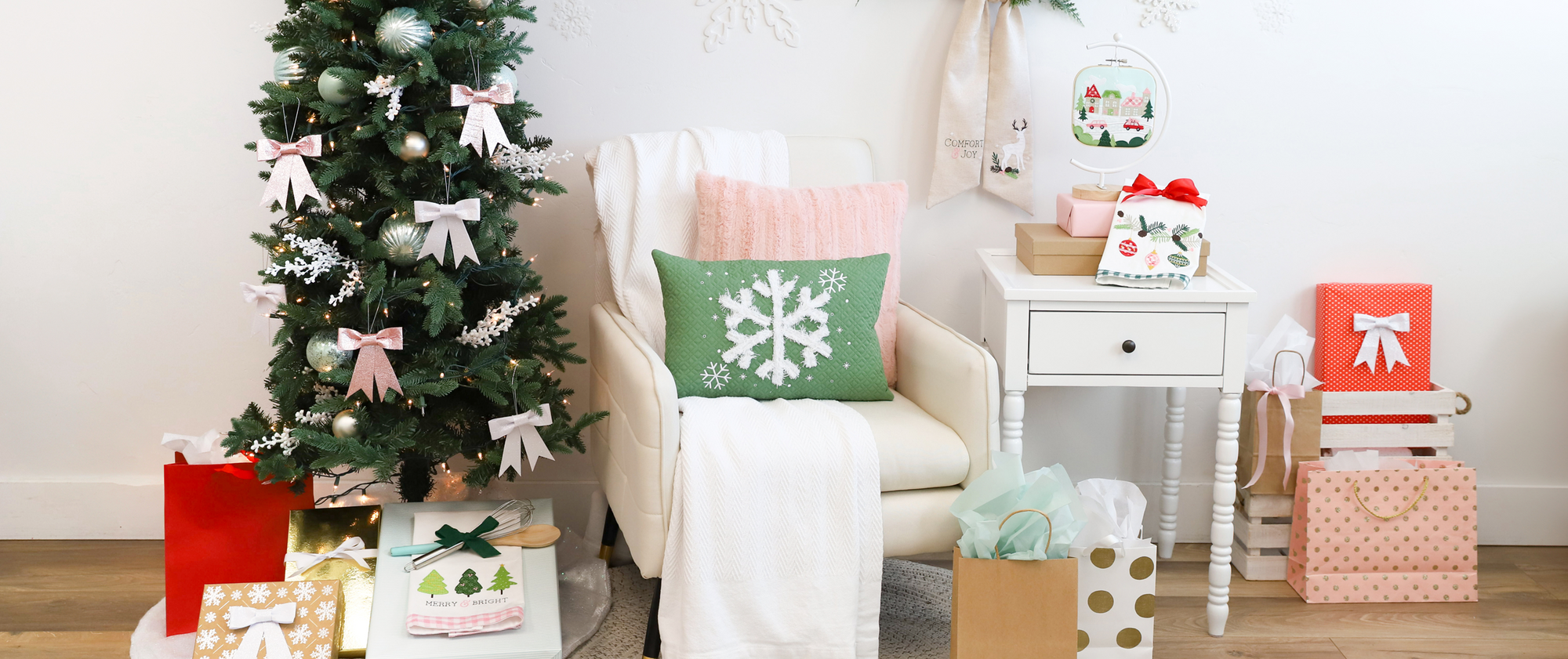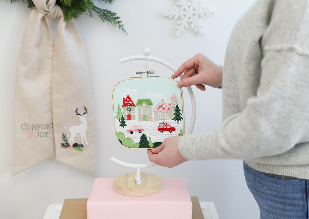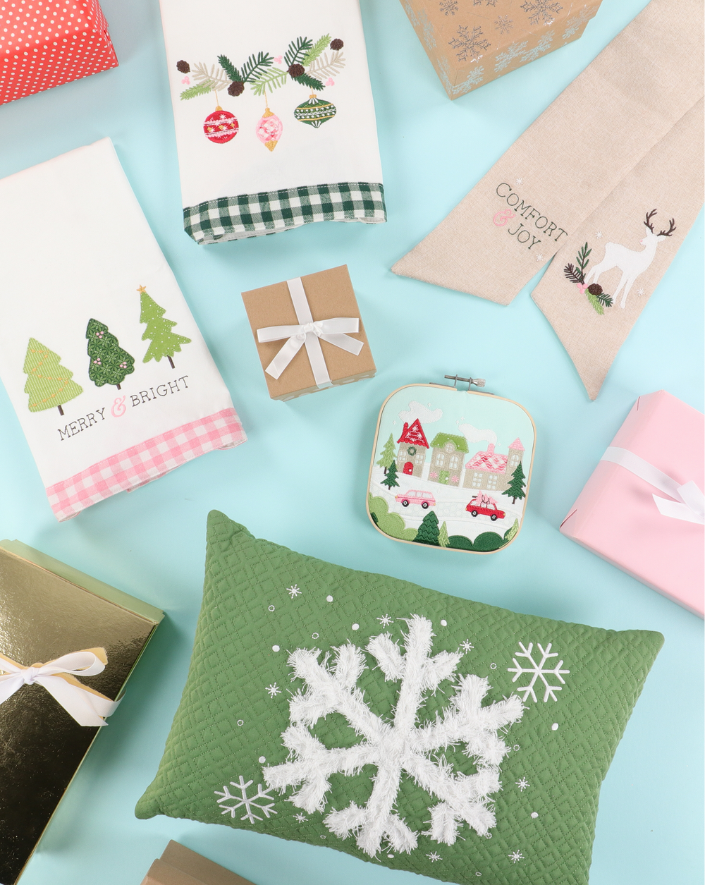 Kimberbell’s two-day Comfort & Joy machine embroidery event features six holiday designs for five stunning projects: the Blizzard Bliss Pillow, Comfort & Joy Wreath Sash, Joy Ride Hoop, and the Baubles & Boughs and Merry & Bright Tea Towels. With classic colors and a variety of new techniques, our Comfort & Joy event is sure to warm the holiday heart!