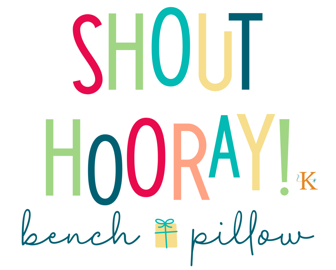 Retraction: In the Shout Hooray Bench Pillow instructions, the protective paper used in the Balloons 2 Block (page 31) should be placed glossy side down on top of the vinyl.