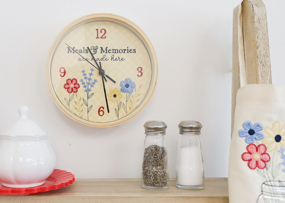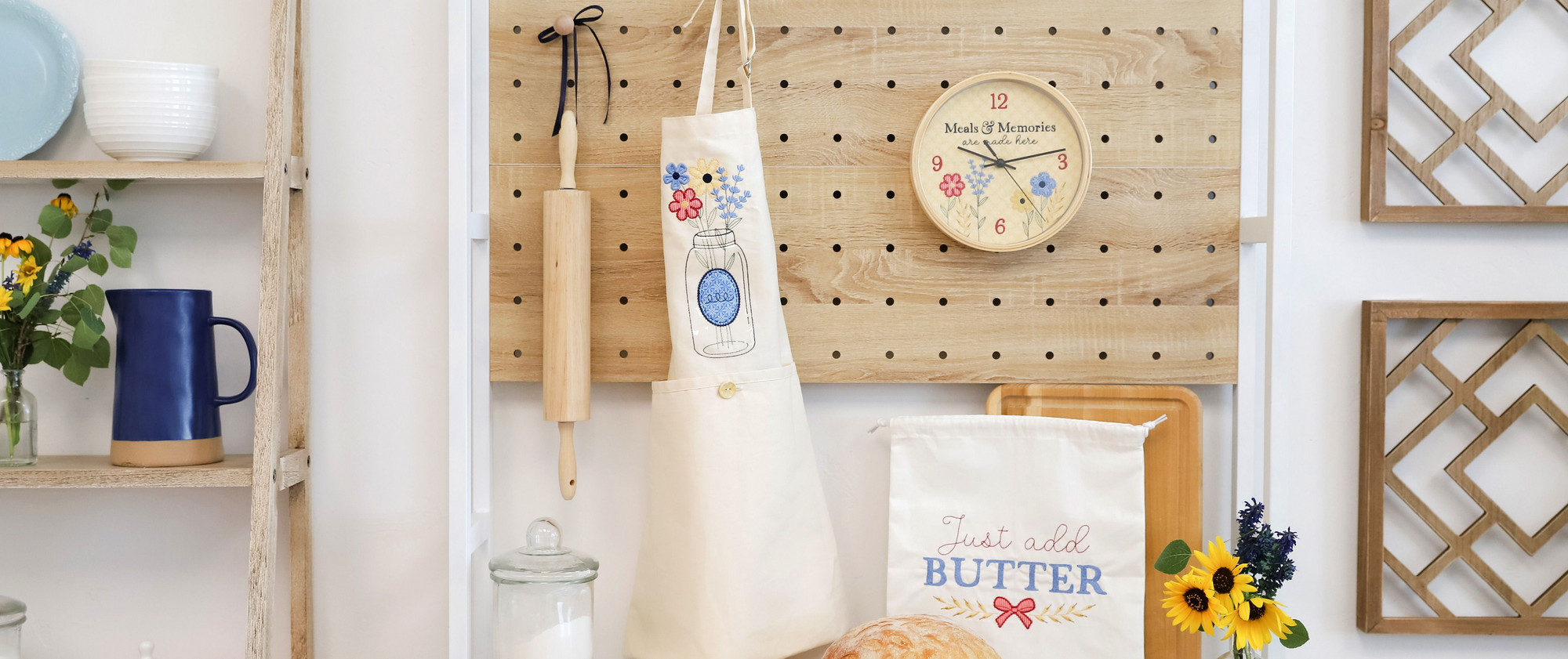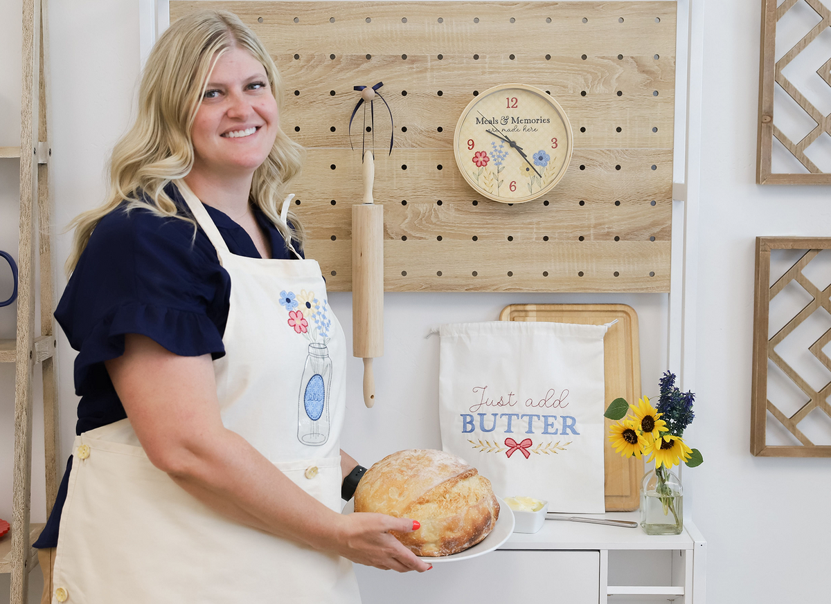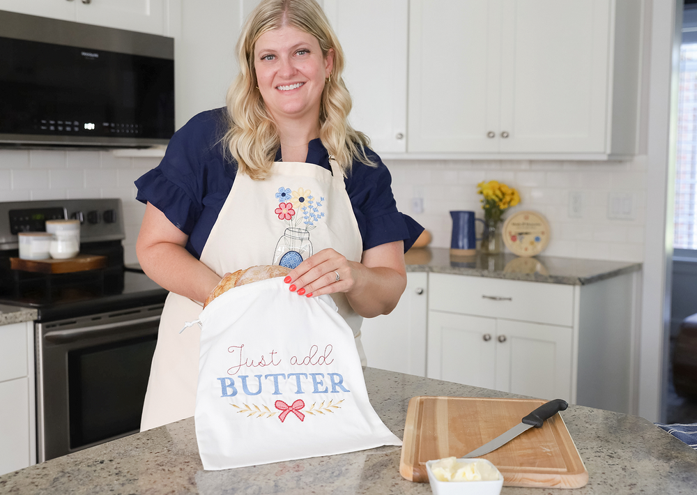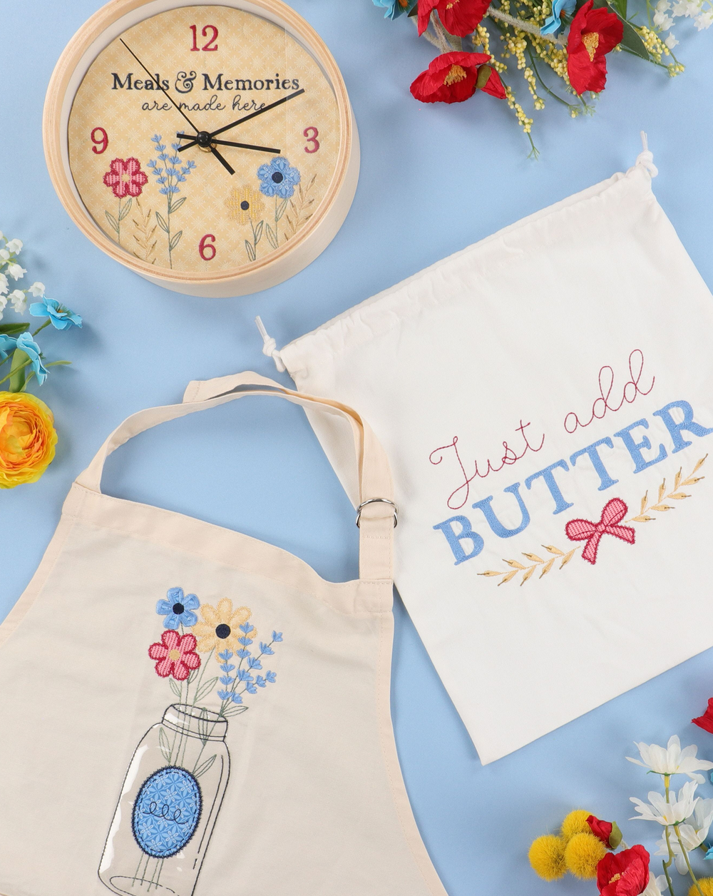 At Kimberbell’s one-day machine embroidery event, you’ll make three functional projects with a cottagecore feel: the Meals & Memories Clock, the Just Add Butter Cinch Sack, and a Mason Jar Bouquet Gathering Apron with roomy pockets! With a variety of fresh techniques, Just Add Butter is your recipe for fun.