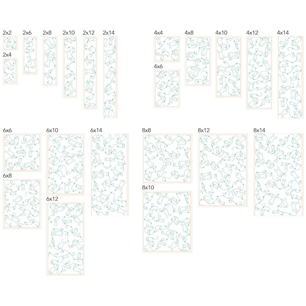 *All 22 files are designed to work with embroidery hoop sizes from 4×4 to 9x14. Check the Embroidery Field Size Chart to double check your machine's capabilities for each file size.
