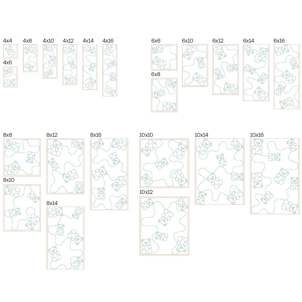 *All 22 files are designed to work with embroidery hoop sizes from 4x4 to 10x16. Check the Embroidery Field Size Chart to double check your machine's capabilities for each file size.
