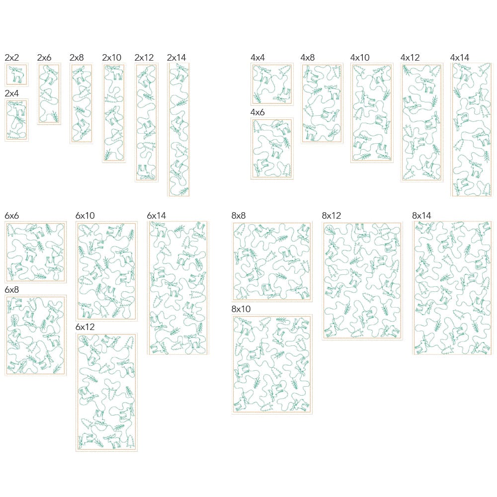 *All 22 files are designed to work with embroidery hoop sizes from 4×4 to 9x14. Check the Embroidery Field Size Chart to double check your machine's capabilities for each file size.
