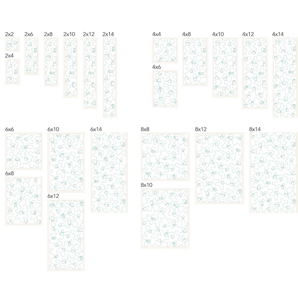 Again, your purchase of Cup 1 includes 44 file sizes: 22 files for the Clear Blue Tiles ® quilting method and 22 files for the Block-by-Block quilting method. Files will fit within any size of machine embroidery hoop, from 4×4 up to 9×14!