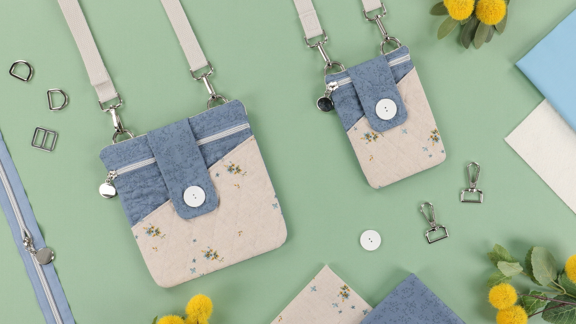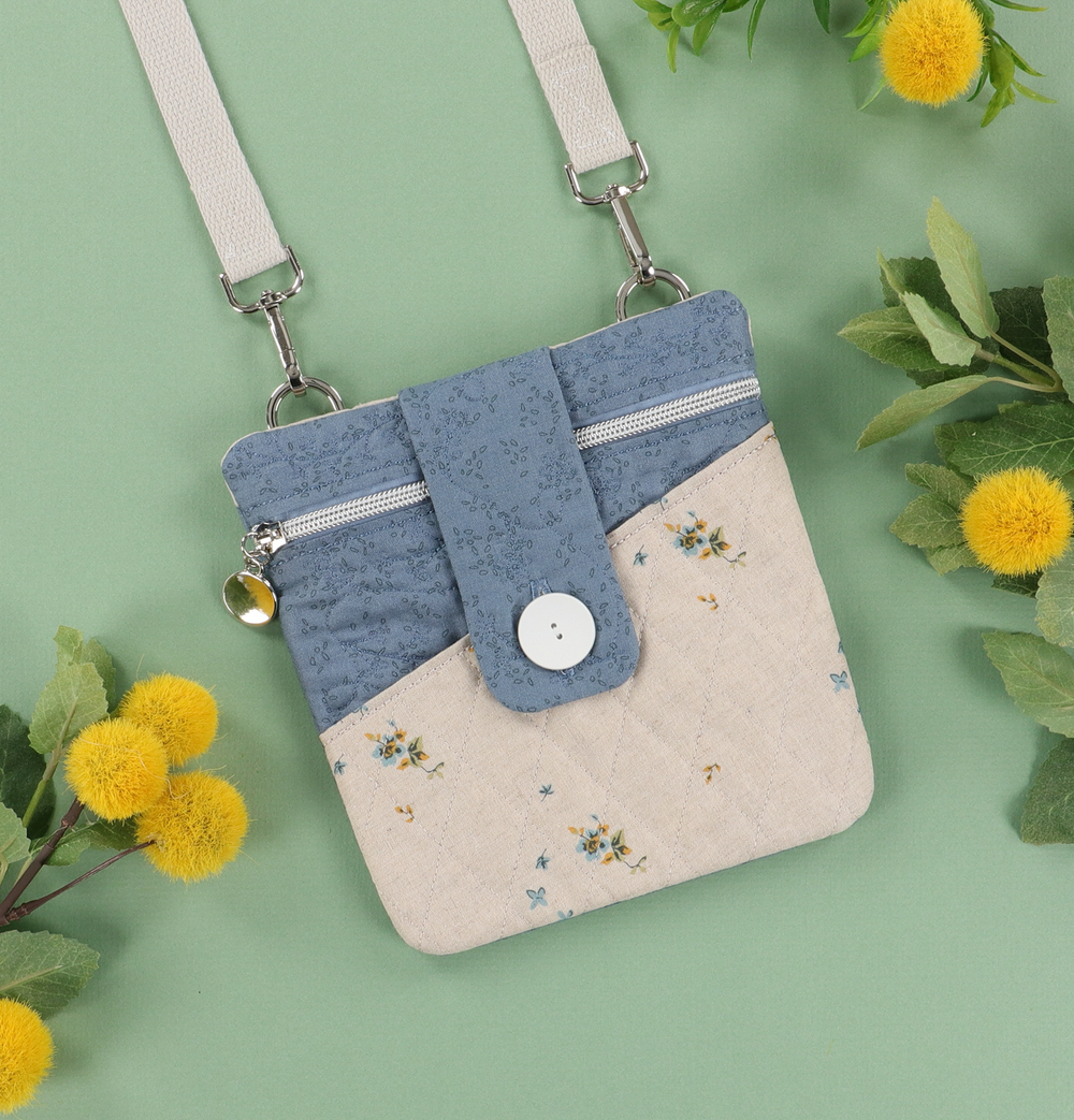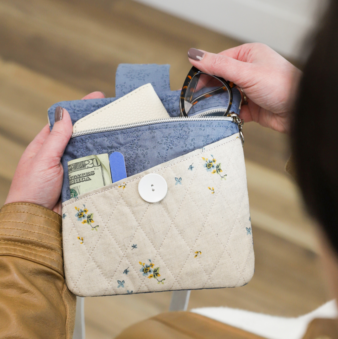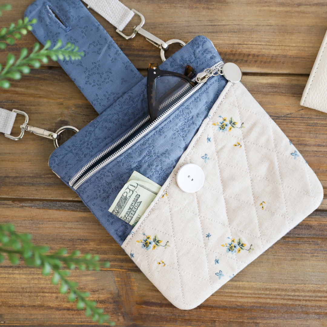 Create functional fashion with Vicki’s Essential Bag! Your February Hoop Studio box includes the supplies you need to make one stylish bag with a diagonal pocket, quilted flap, and zippered enclosure. Stitch the small size in a 5x7 hoop OR the large size in an 8x12 hoop, then add the included hardware and cotton webbing strap! Our detailed instructions and innovative techniques make it easy to finish your bag completely in-the-hoop. With its curated fabrics and darling design, Vicki’s Essential Bag is your grab-and-go accessory for phones, keys, wallets, and more!
