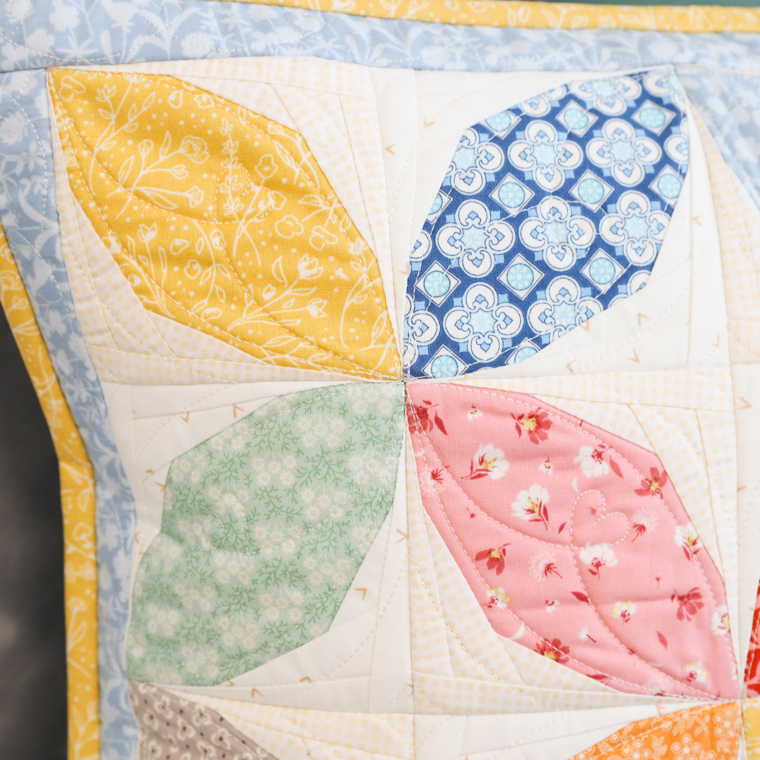 Create delightful projects with the Orange Peel Block! Our February Perfectly Pieced block features a classic leaf shape with two curved corners. Use your favorite fabrics to tumble a variety of patterns! Available in four sizes, this traditional-yet-modern block comes with exclusive background quilting and step-by-step instructions for an 18 x 18” project. Make a pillow, table topper, or wall hanging, then stitch a stocking, trivet, tote, pincushion, and more!